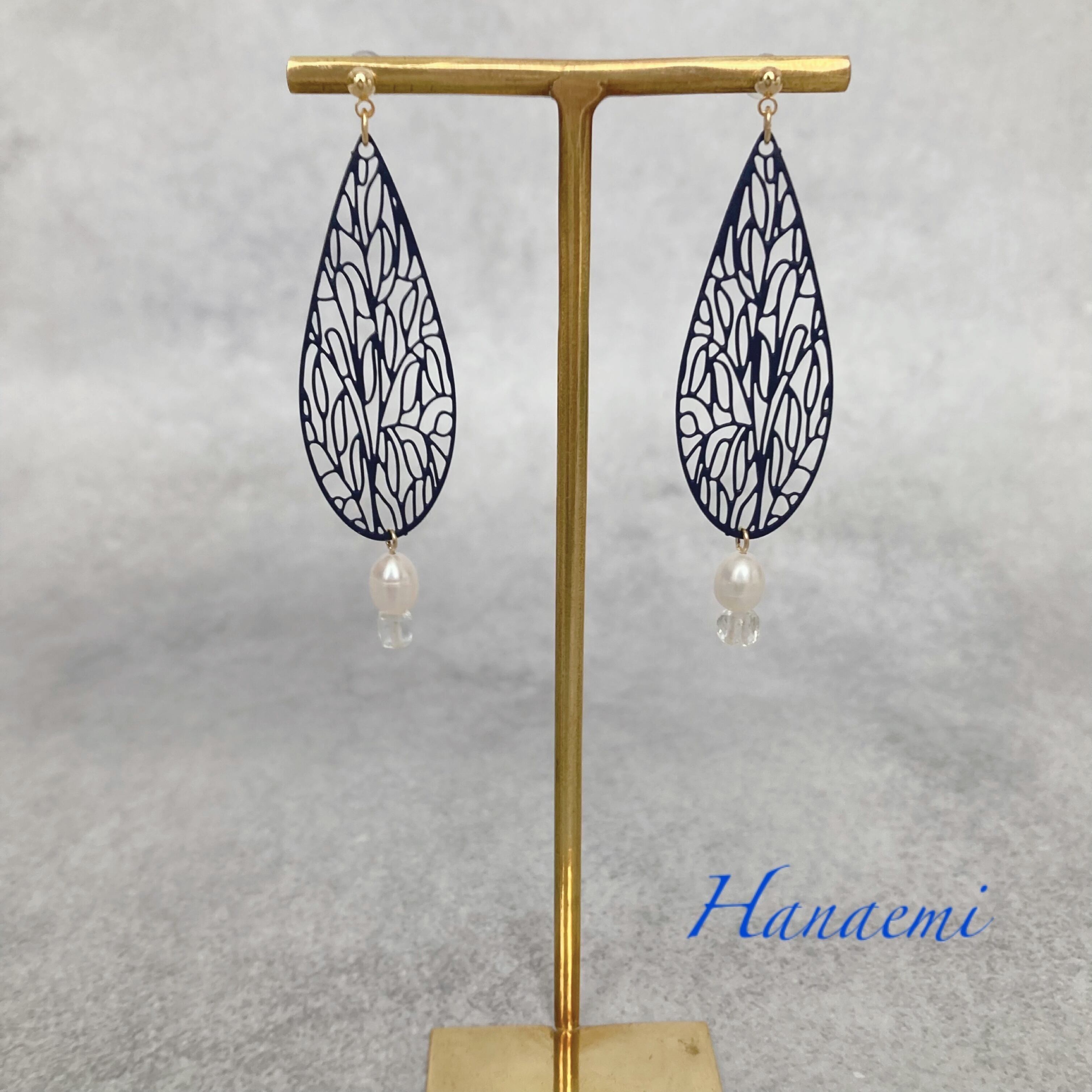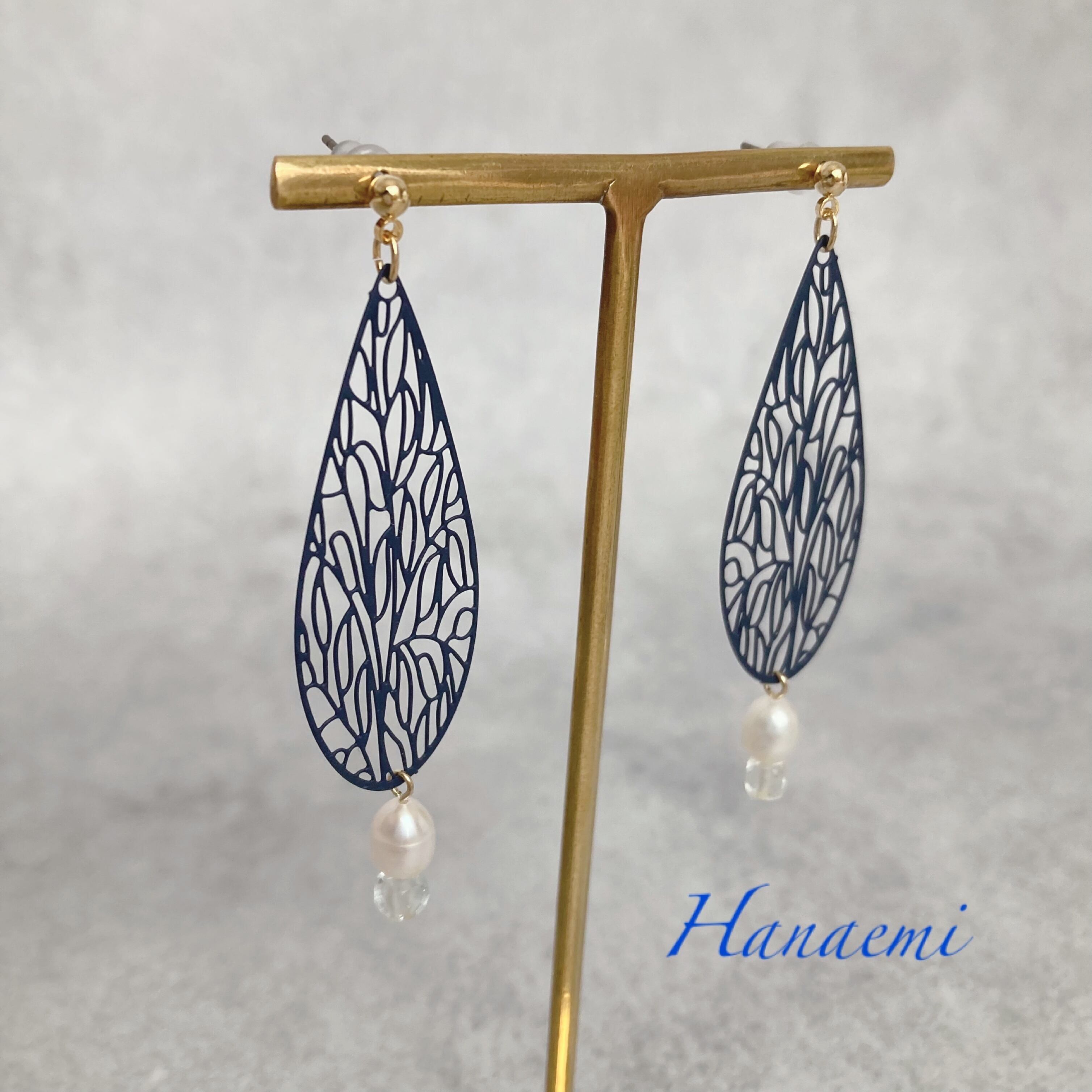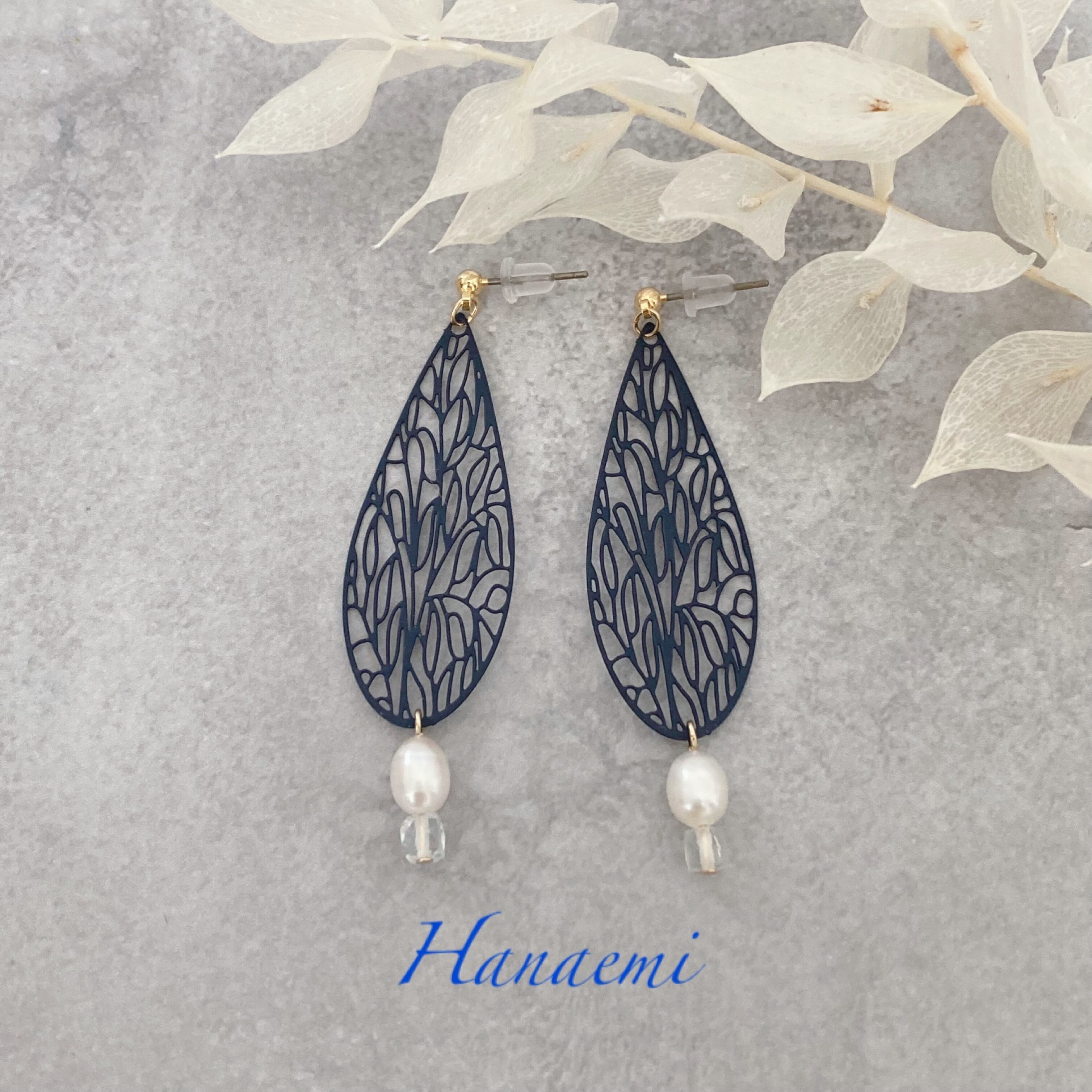 Hanaemiでは初の、藍色の雫が大人っぽい、透かしパーツを使用しました。