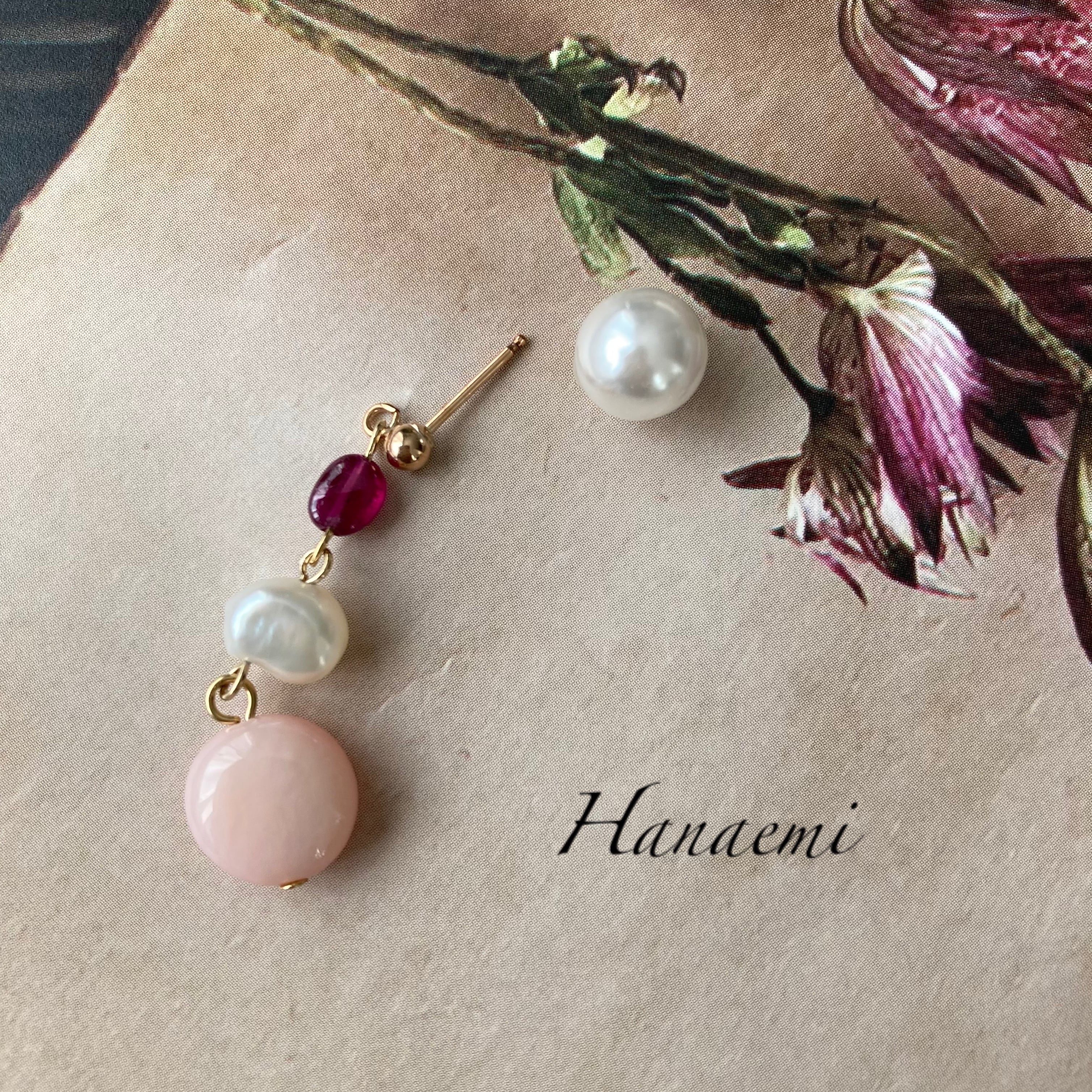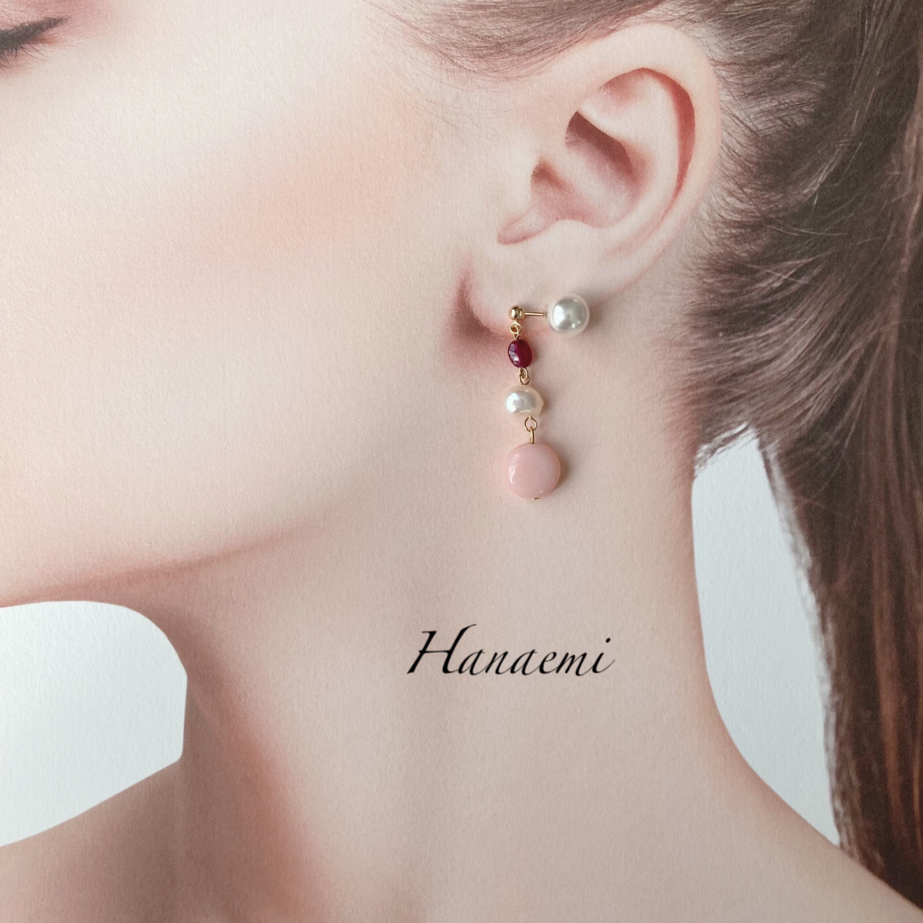 Hanaemiからピンクオパール、そしてルビーを使った作品の紹介は初でございます。