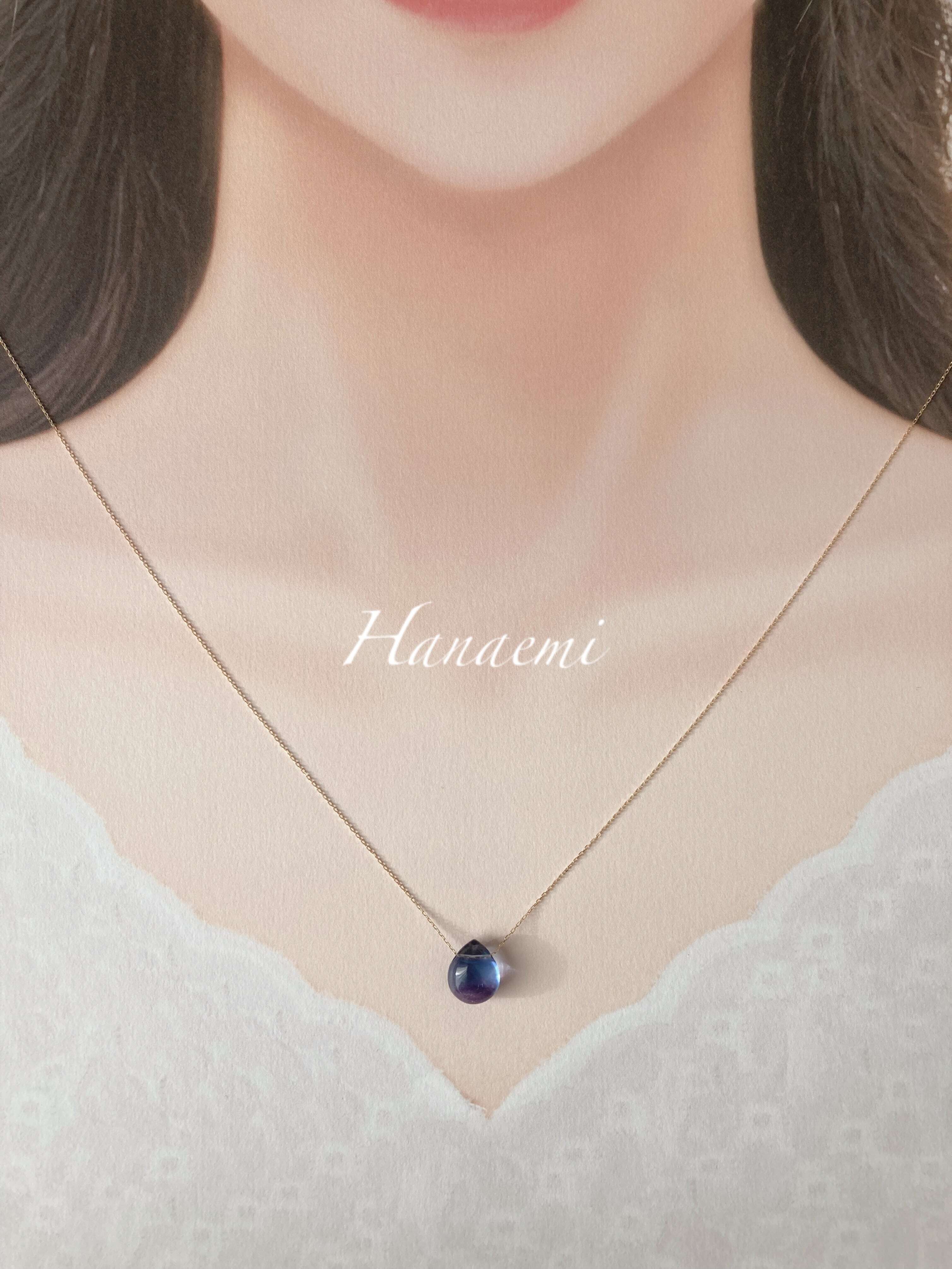 ネックレスにぴったりの滴型の天然石を一粒厳選し、美しい18kのネックレスに仕上げました。