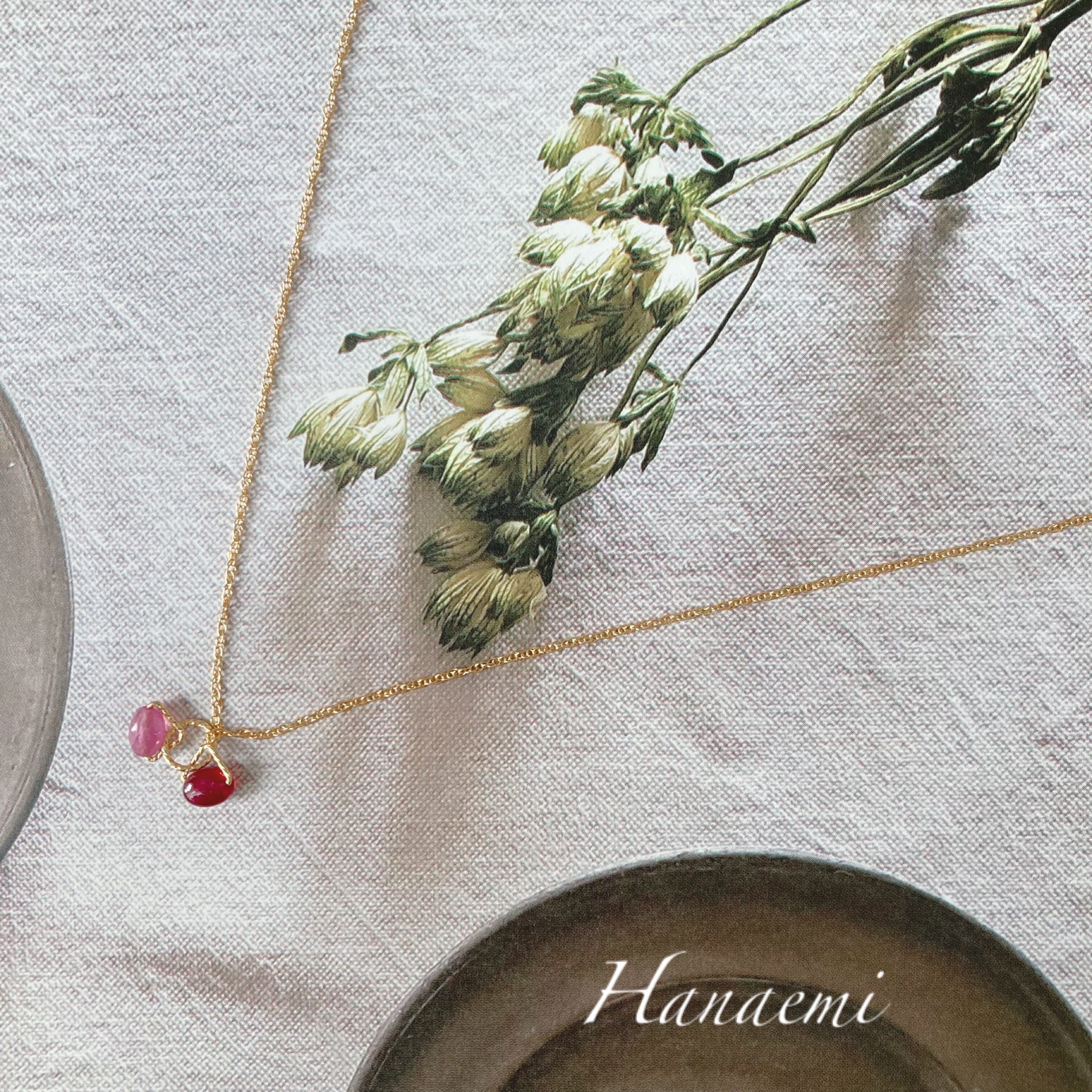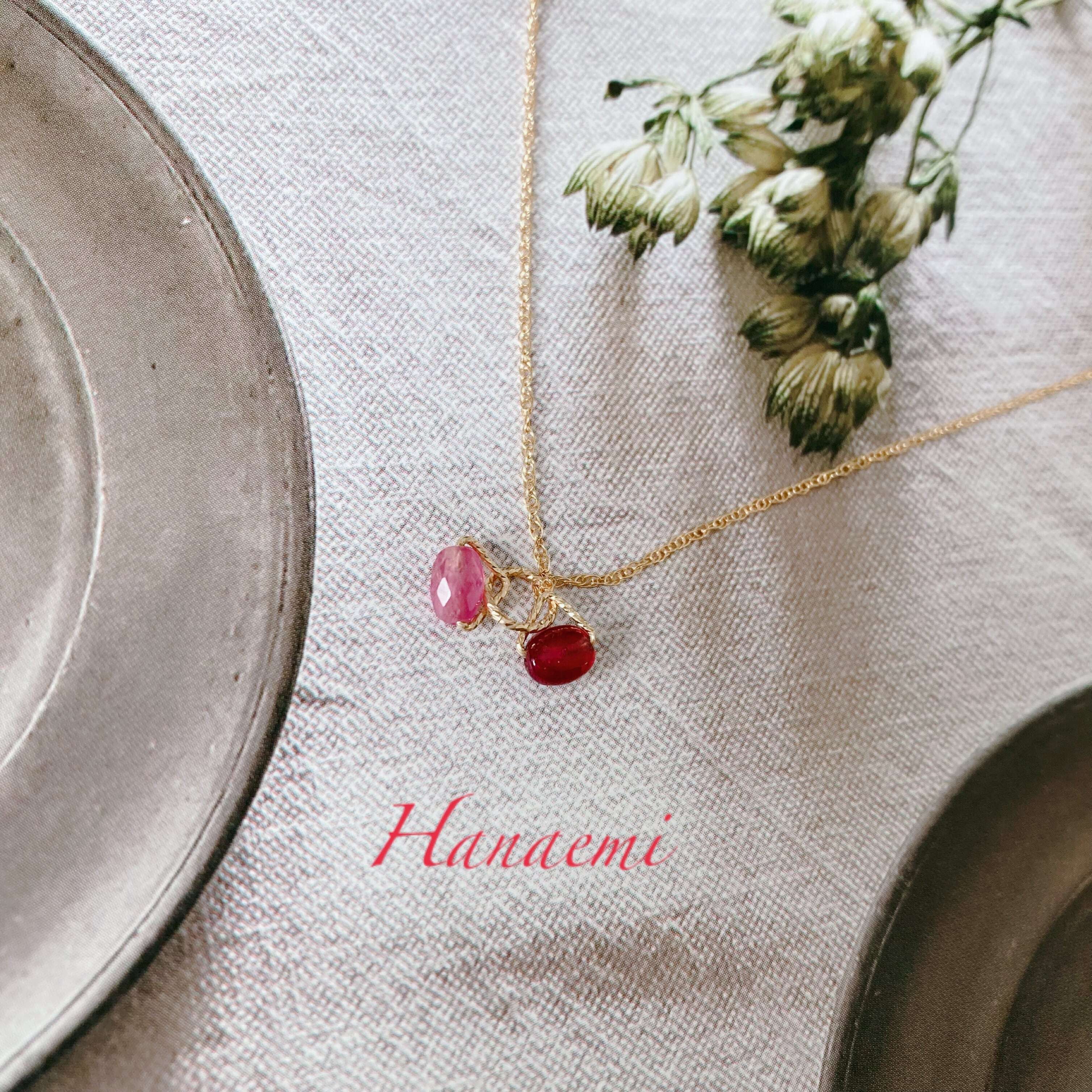 石言葉も、「情熱」「勝利」「勇気」「自由」など、情熱の石などと言われ、ピンクサファイヤは、「成功」「誠実」「慈愛」など、二つの石それぞれ、パワフルで魅力的な石言葉が並びます。そんな石言葉をちょっとお守りに、Hanaemiのアクセサリーで日常を楽しんで、「喜び」をたくさん作って頂けたら幸いです。