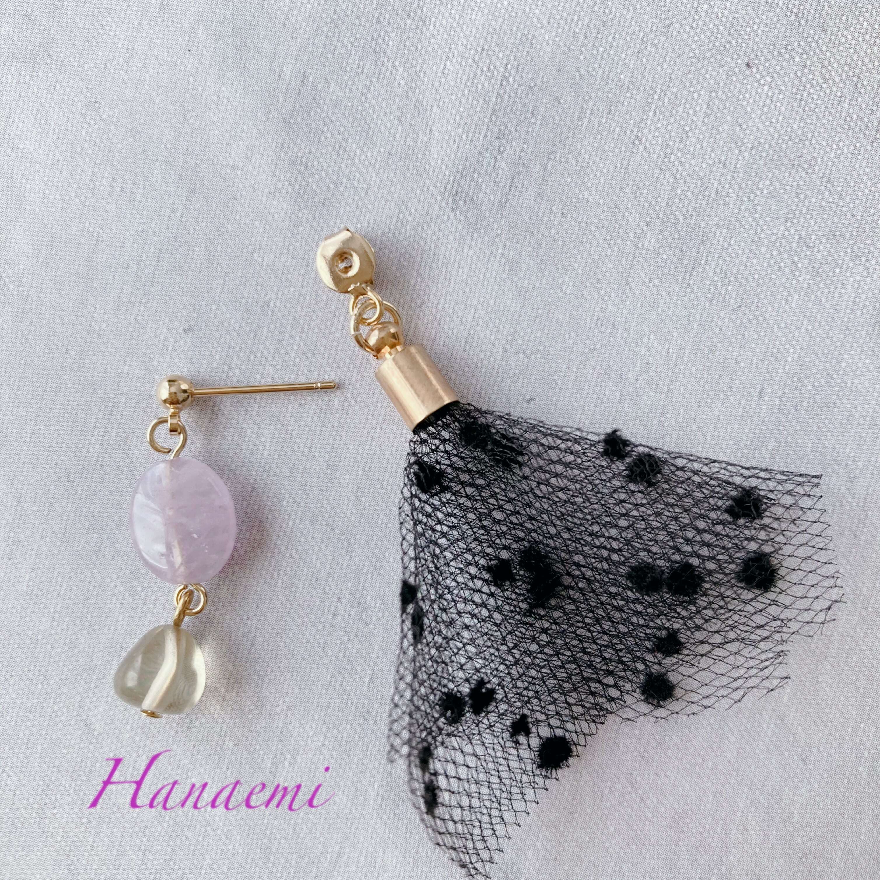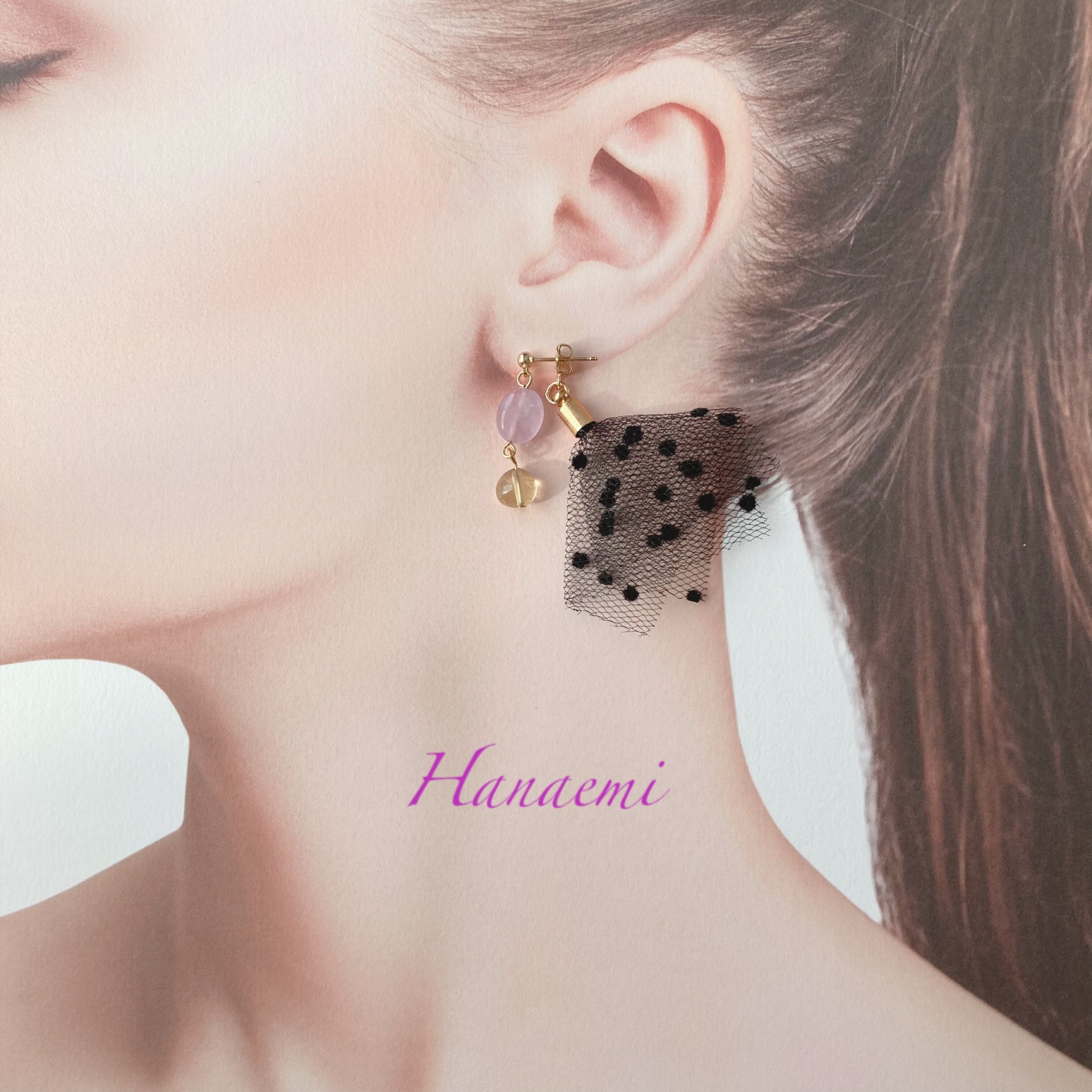 また、こちらのピアスは、キャッチ部分にレースが施してあり、分離する仕様になっておりますので、他のピアスとの組み合わせ等を楽しめるデザインになっております。