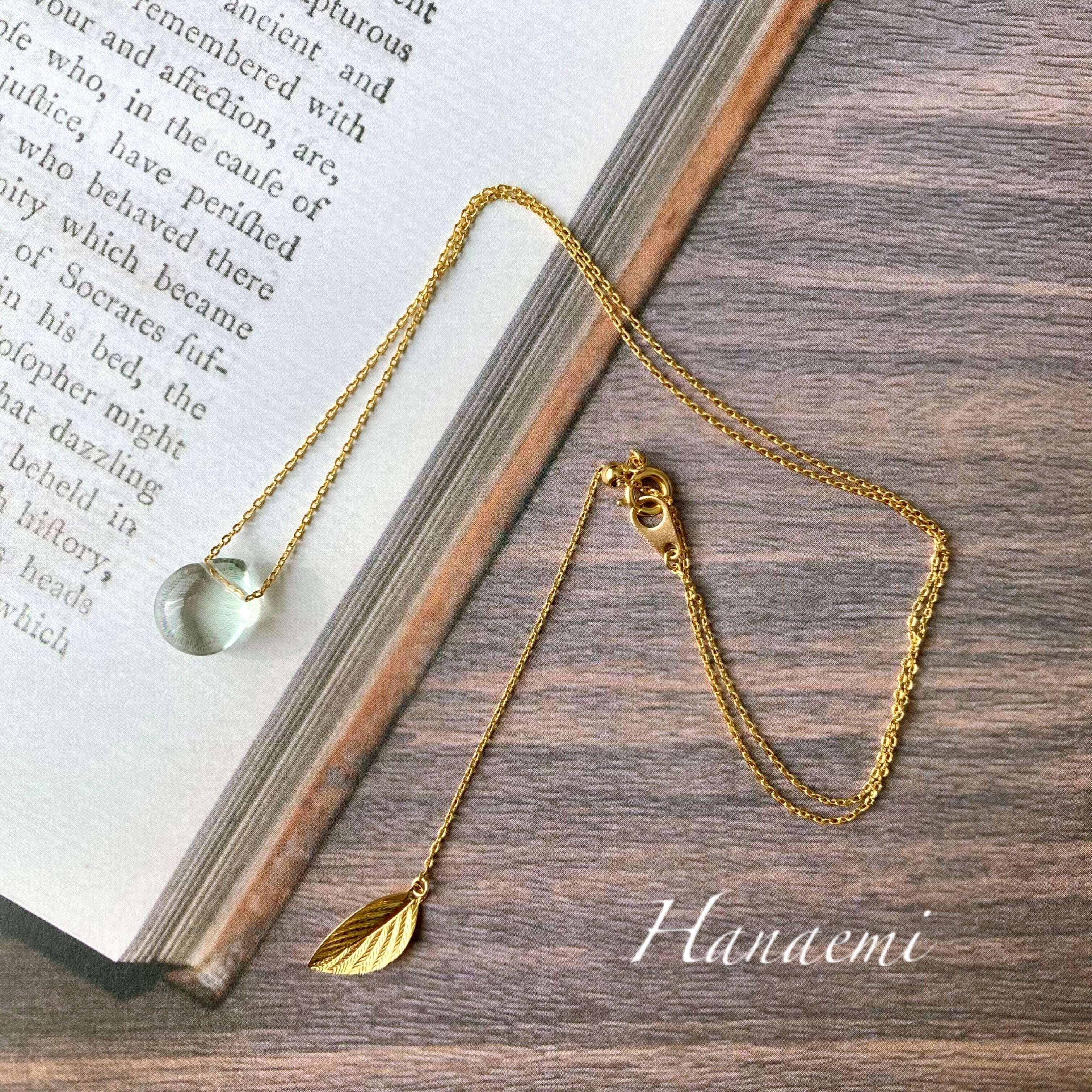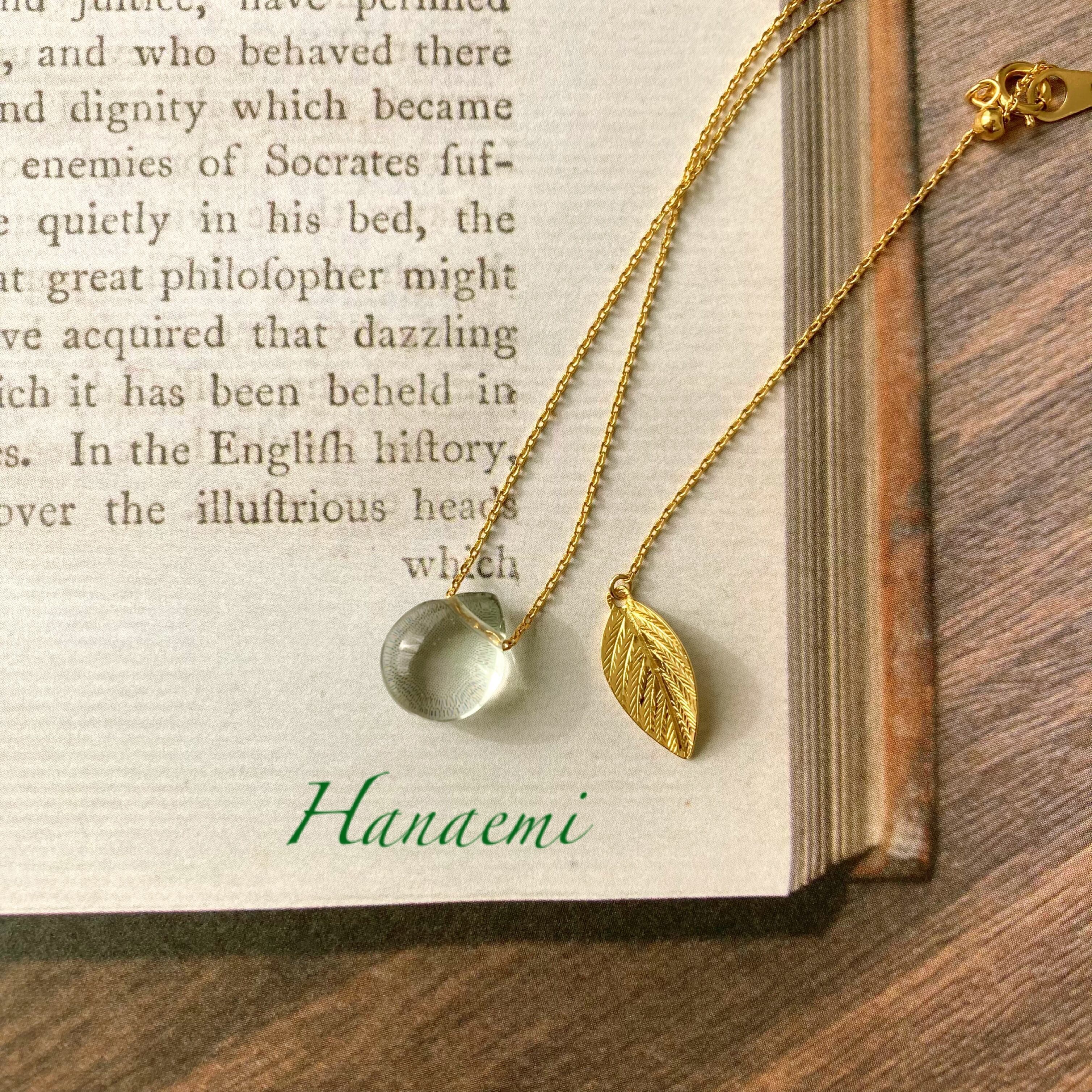 『葉っぱから溢れた一雫』そんなテーマのネックレスの作品です。