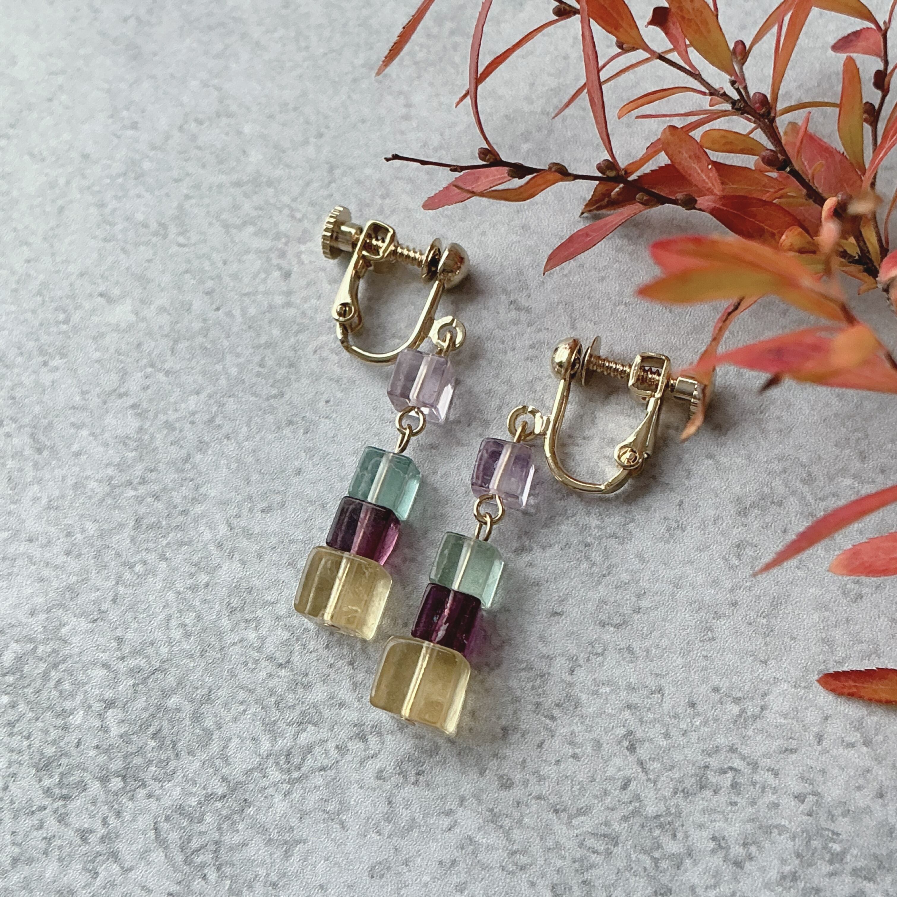 光を取り込み、石たちが揺れ動く姿、ほんのり透けた透明感のカラー、まるでキャンディーの様で心が躍ります。フローライトの石言葉は、「柔軟性」「変化の時を心穏やかに乗り切りたい」「寛容」「積極性」「安心感」「ヒーリング」「変化の時こそ力を発揮」そんな興味深い石言葉が続きます。この「光の箱」をウキウキ楽しみながら、ほんの少し石言葉を御守りに、天然石のアクセサリーライフを楽しんで頂けたら幸いです。