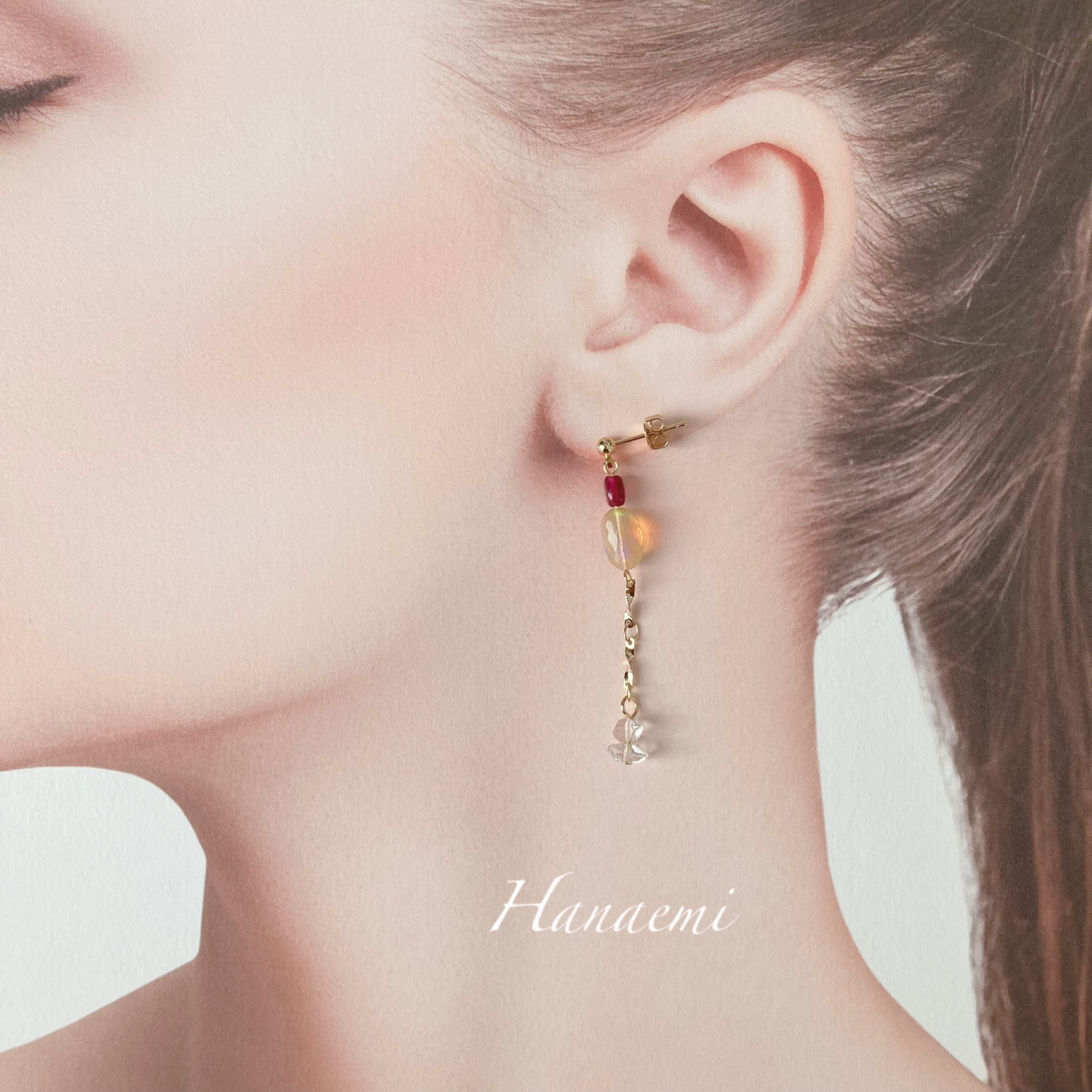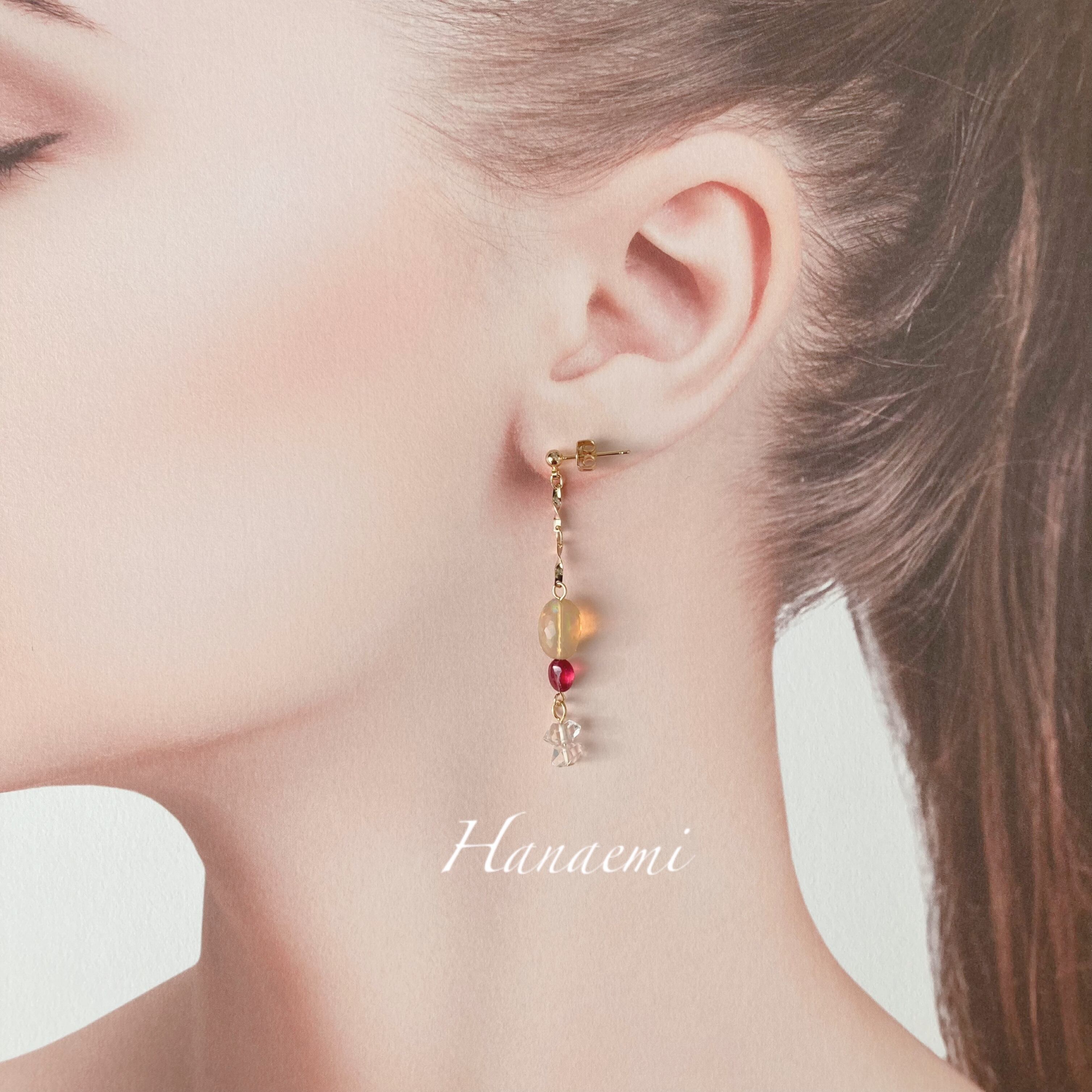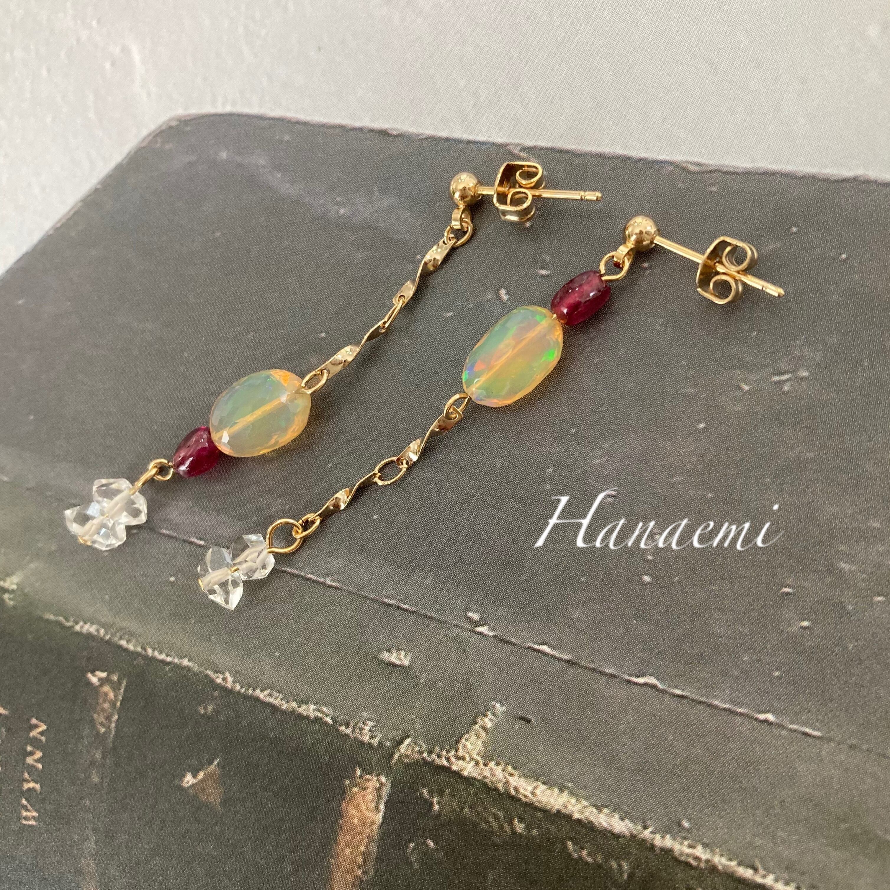 使われている天然石は、プレシャスオパール、ルビー、ハーキマーダイヤモンドです。