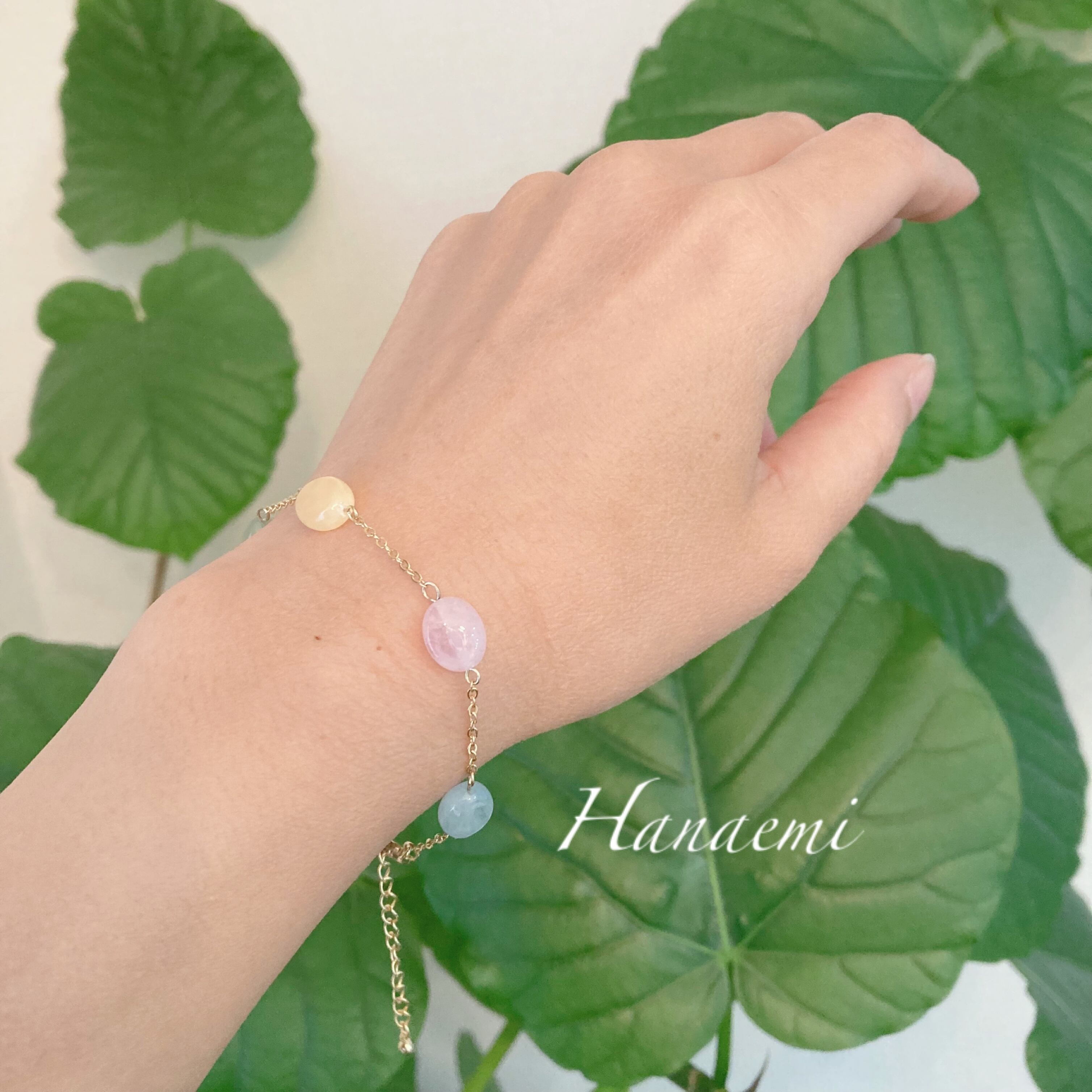 天然石:ローズクオーツ、イエロージェイド、ジェイド、アクアマリン