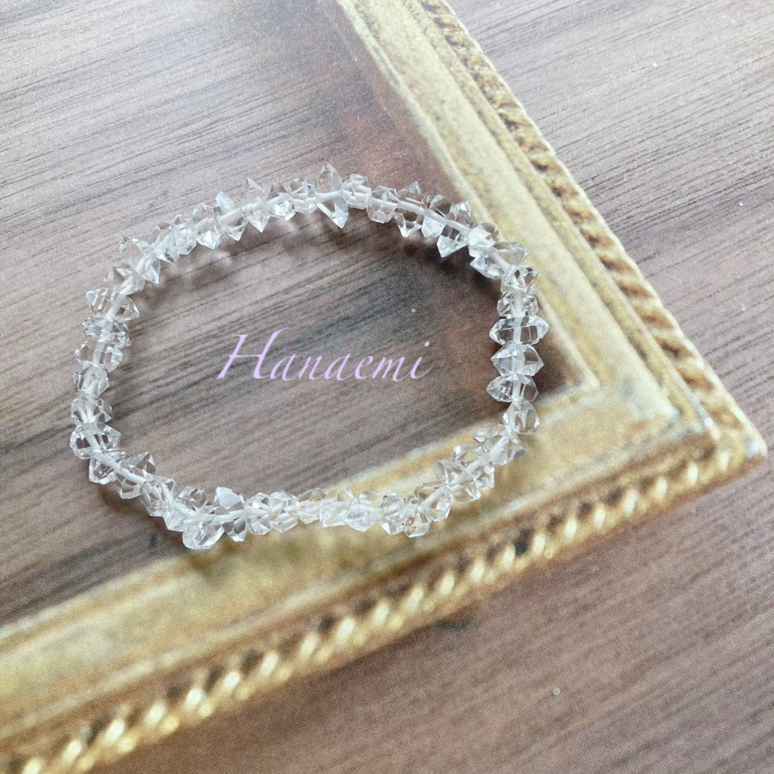 透き通るシャープなクリア感が非常に美しいハーキマーダイヤモンドですが、意識の拡大に良いと言われる天然石でも有ります。また、エネルギーも強いと一目置かれる石でも有り、ご縁の有る方の元で太陽の光をたくさん吸収し輝きを増し、着ける方のエネルギーも輝く事を願って作成いたしました。