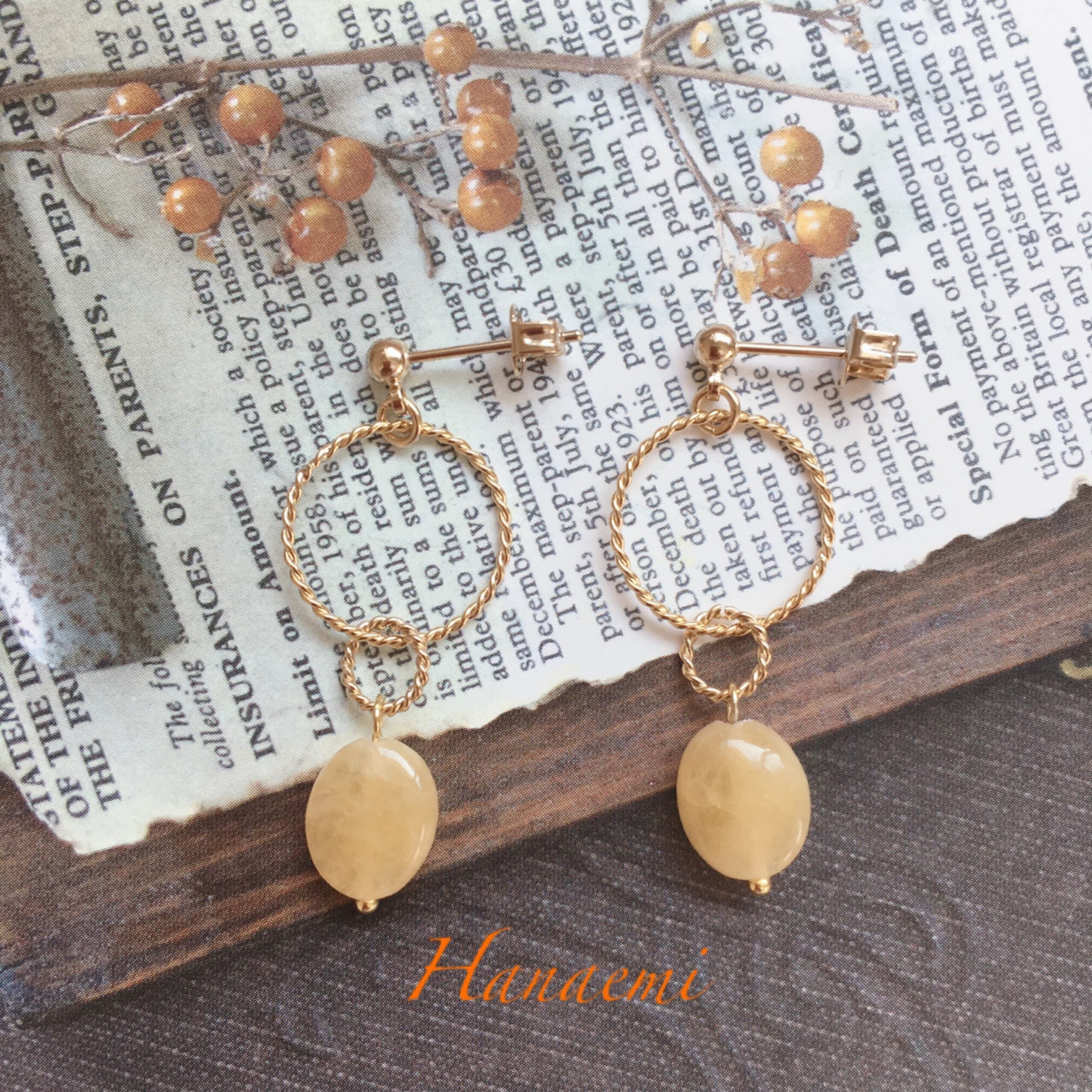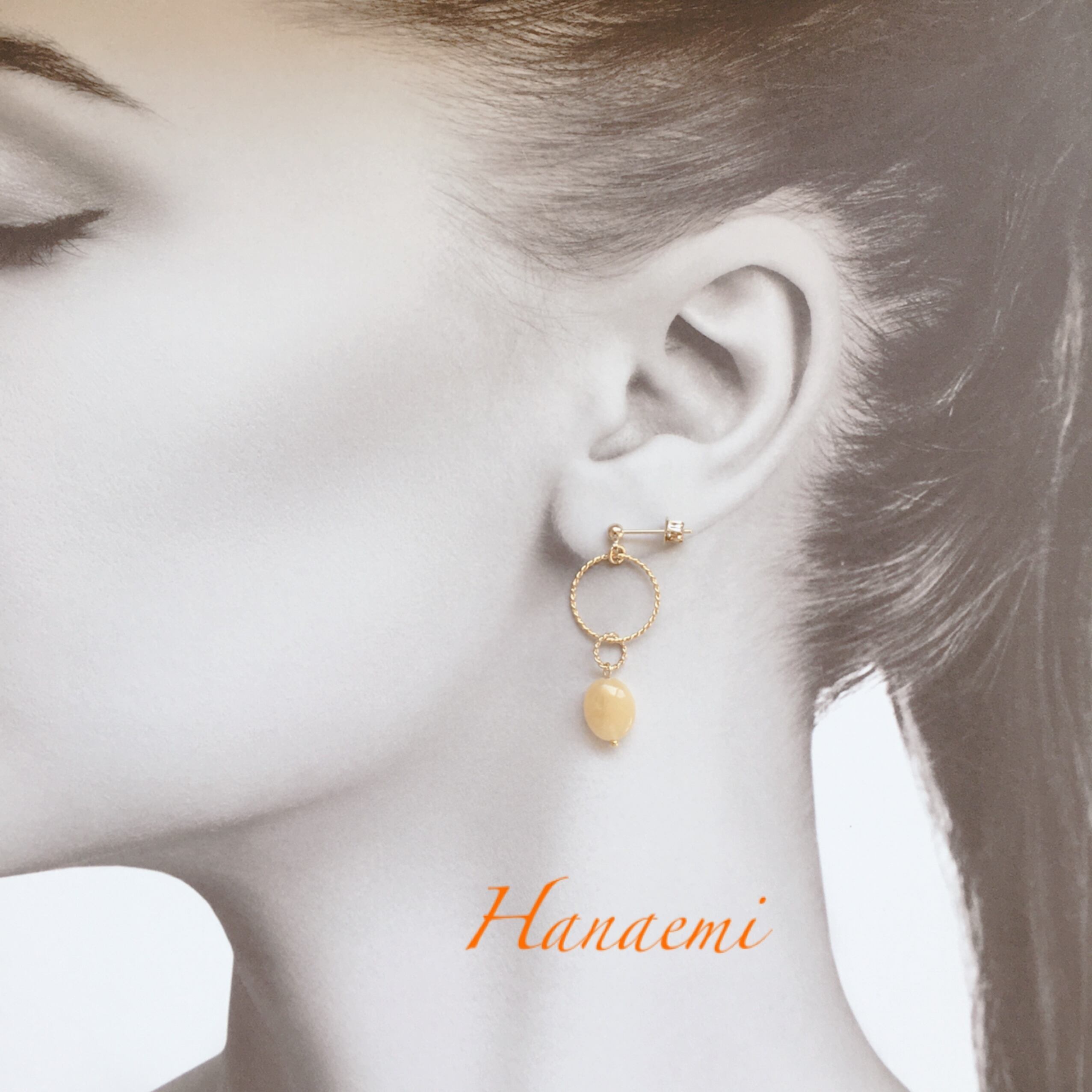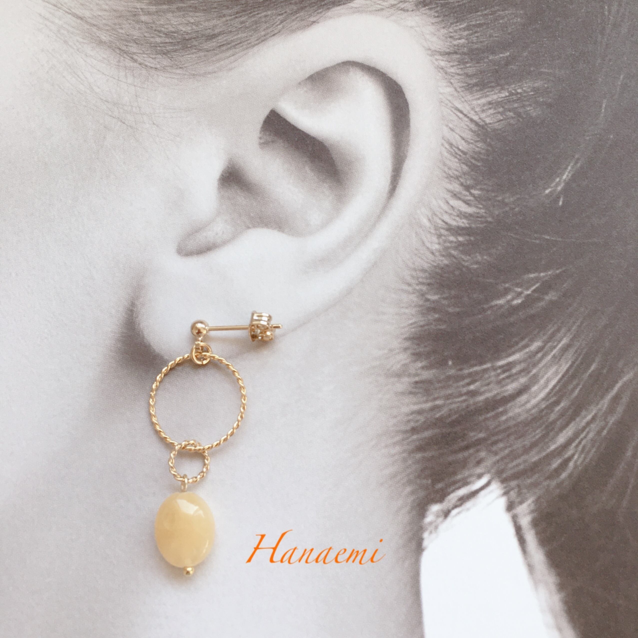 山吹色のジェイドが幸せを運んでくれそうなピアスです。