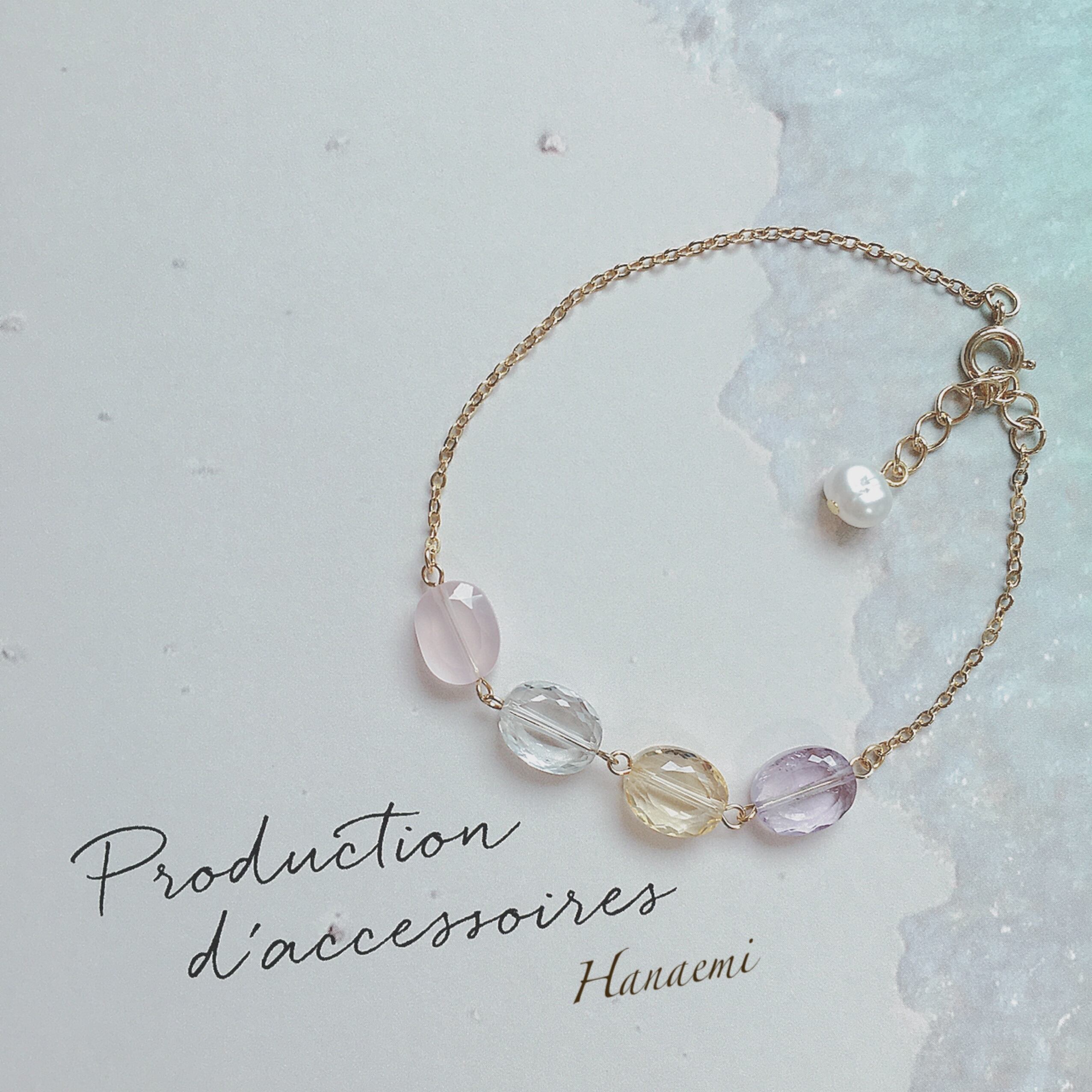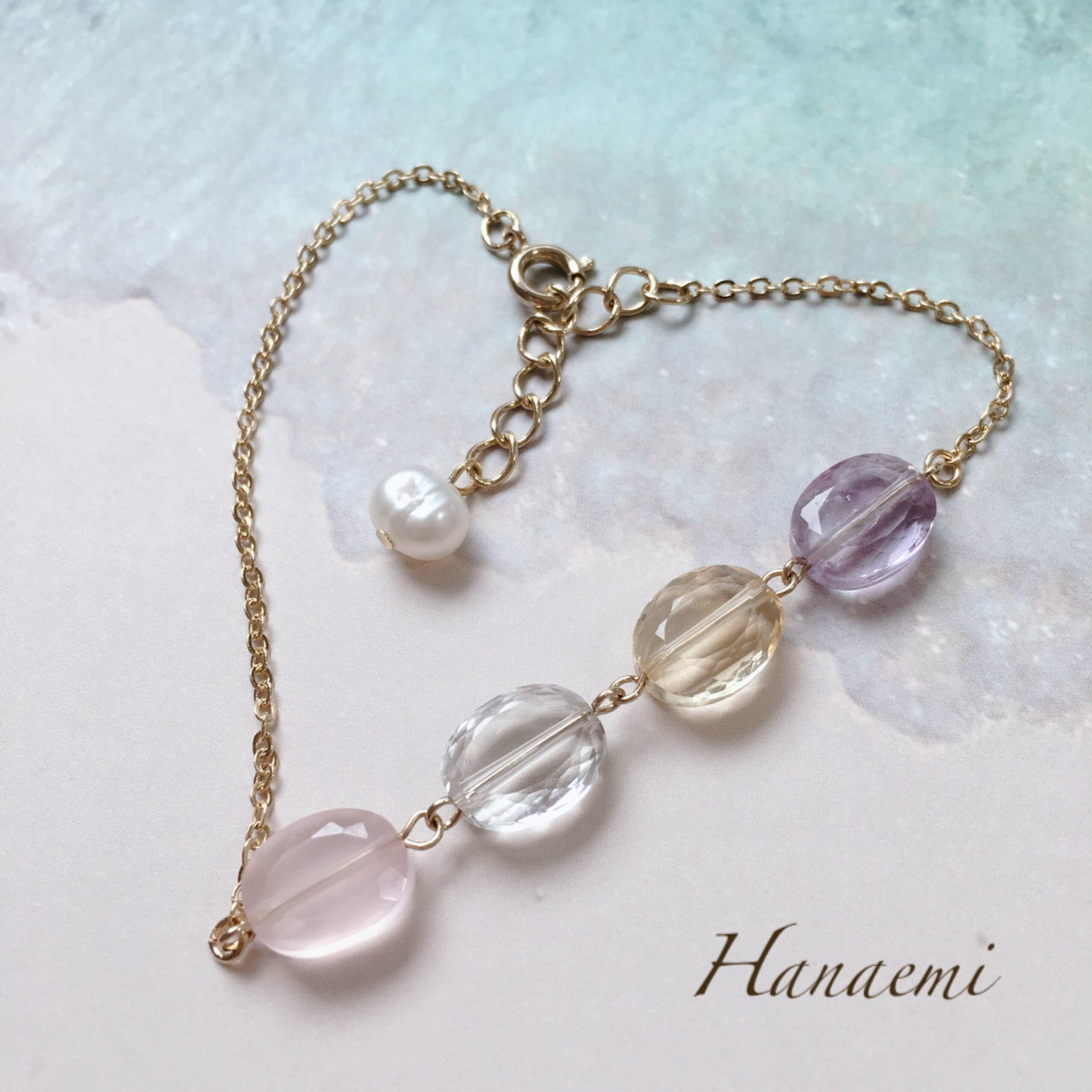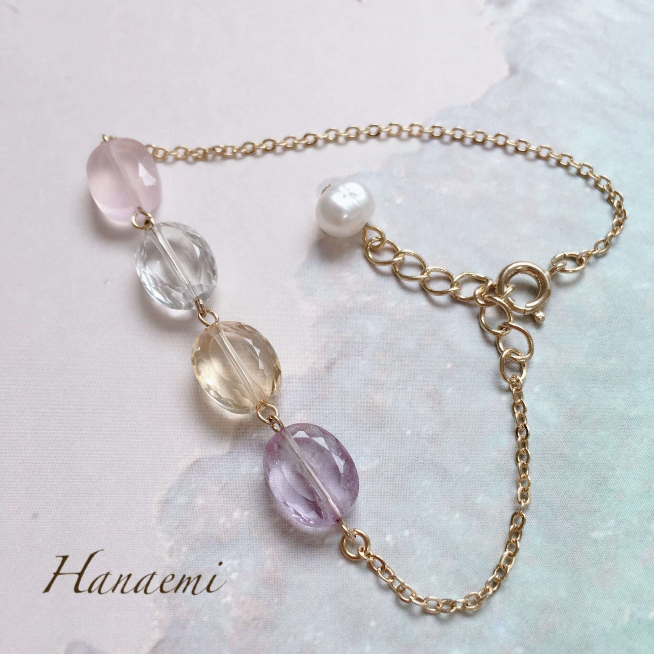天然石:ローズクオーツ、グリーンアメシスト、アメシスト、シトリン、パール