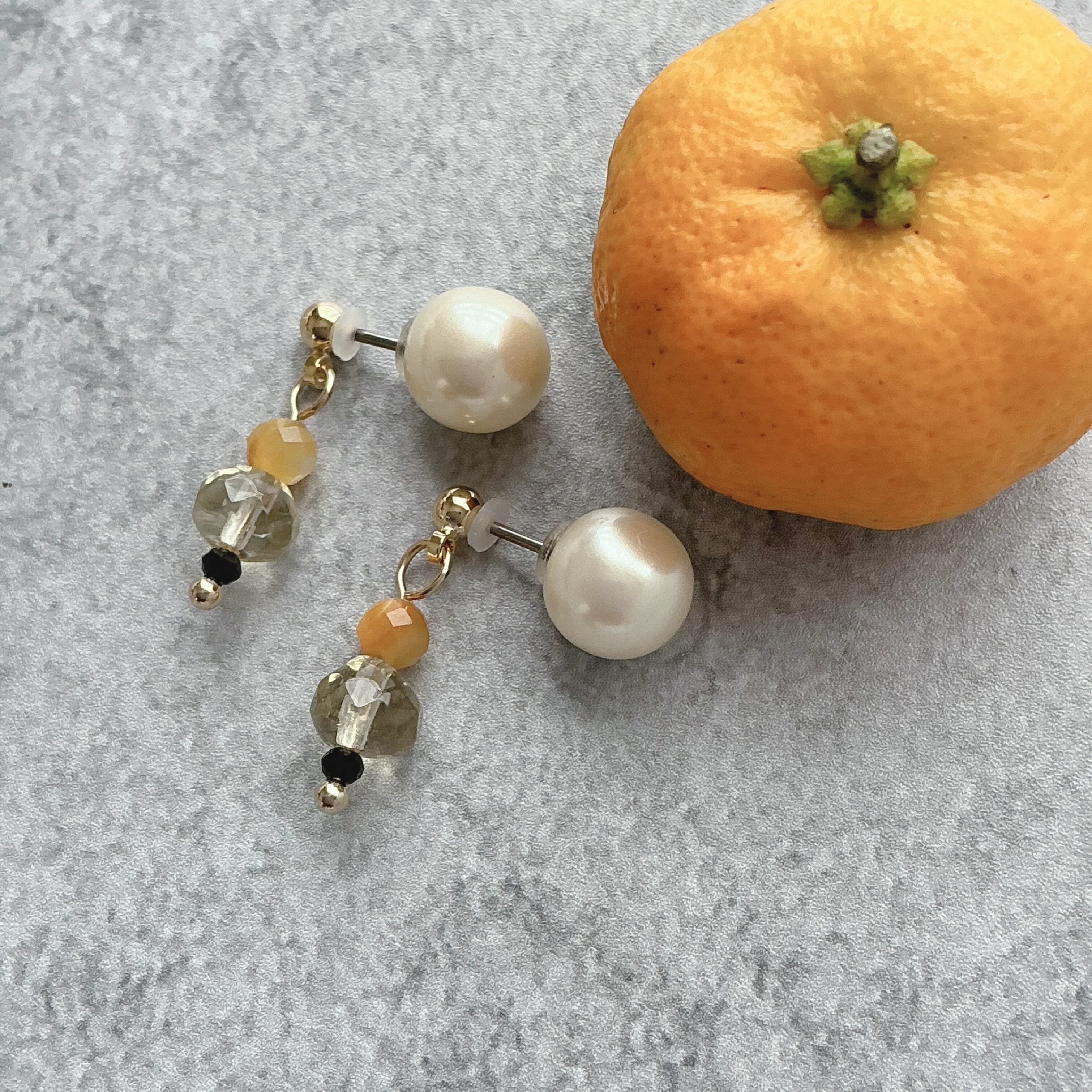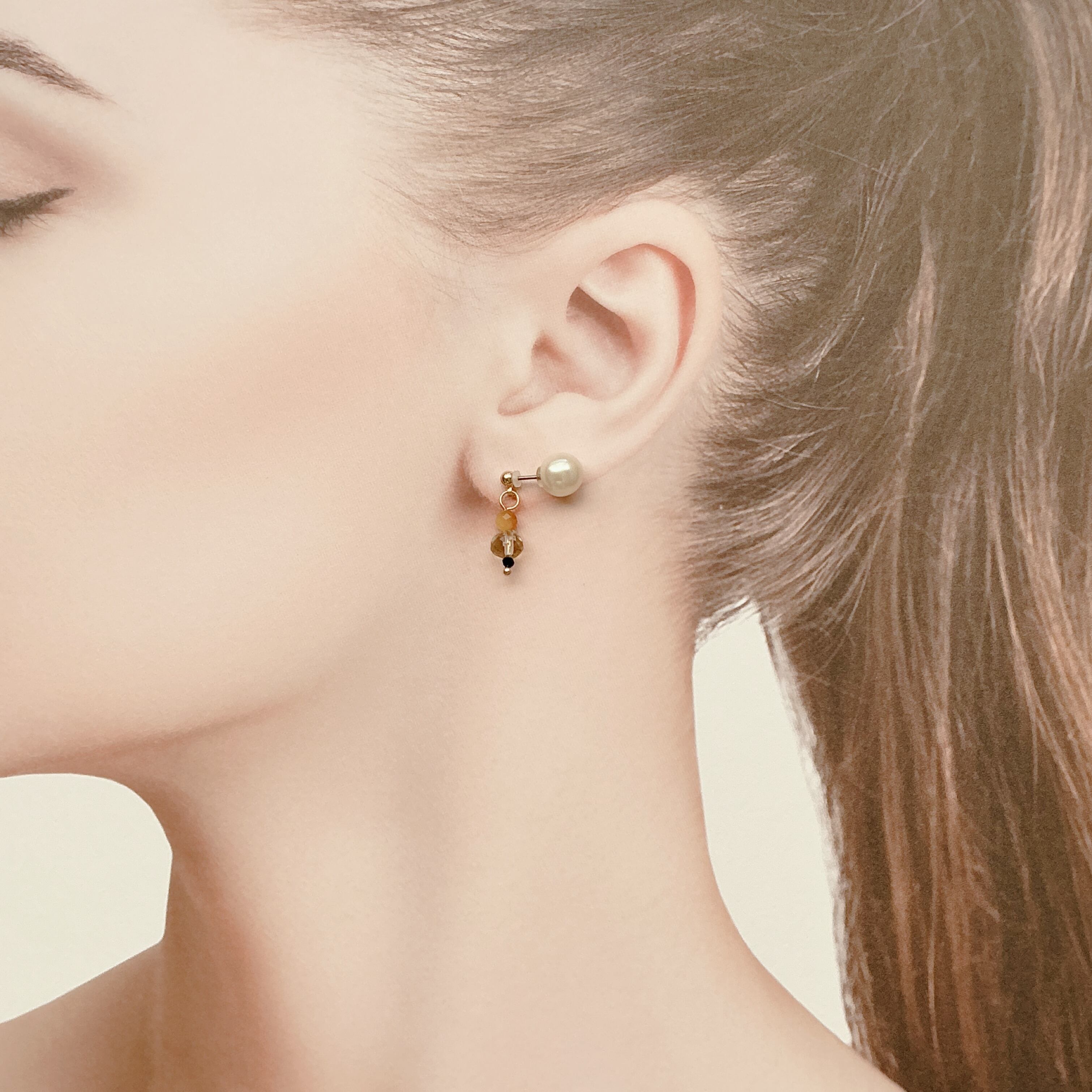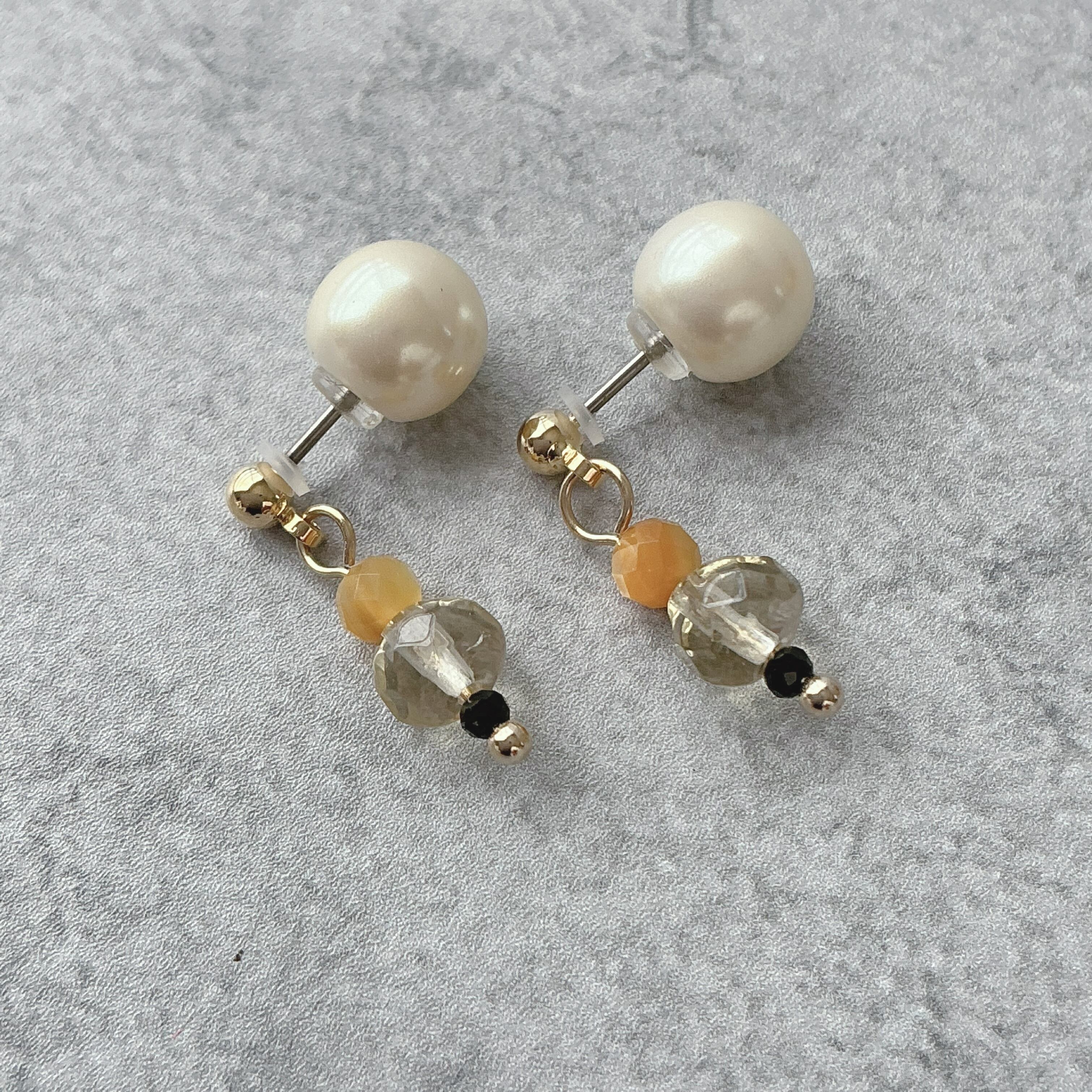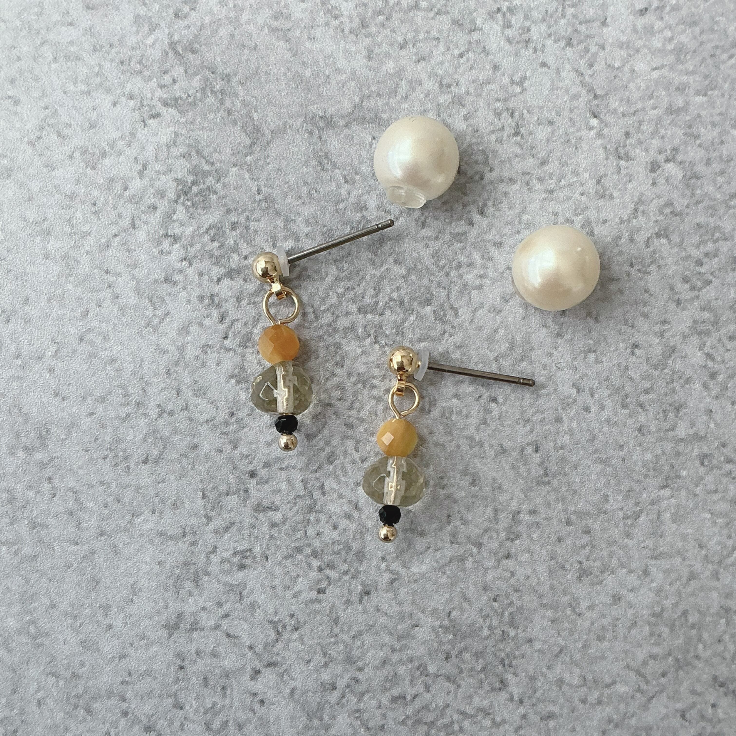 こちらのピアスはキャッチ部分がパール仕様になっております。
