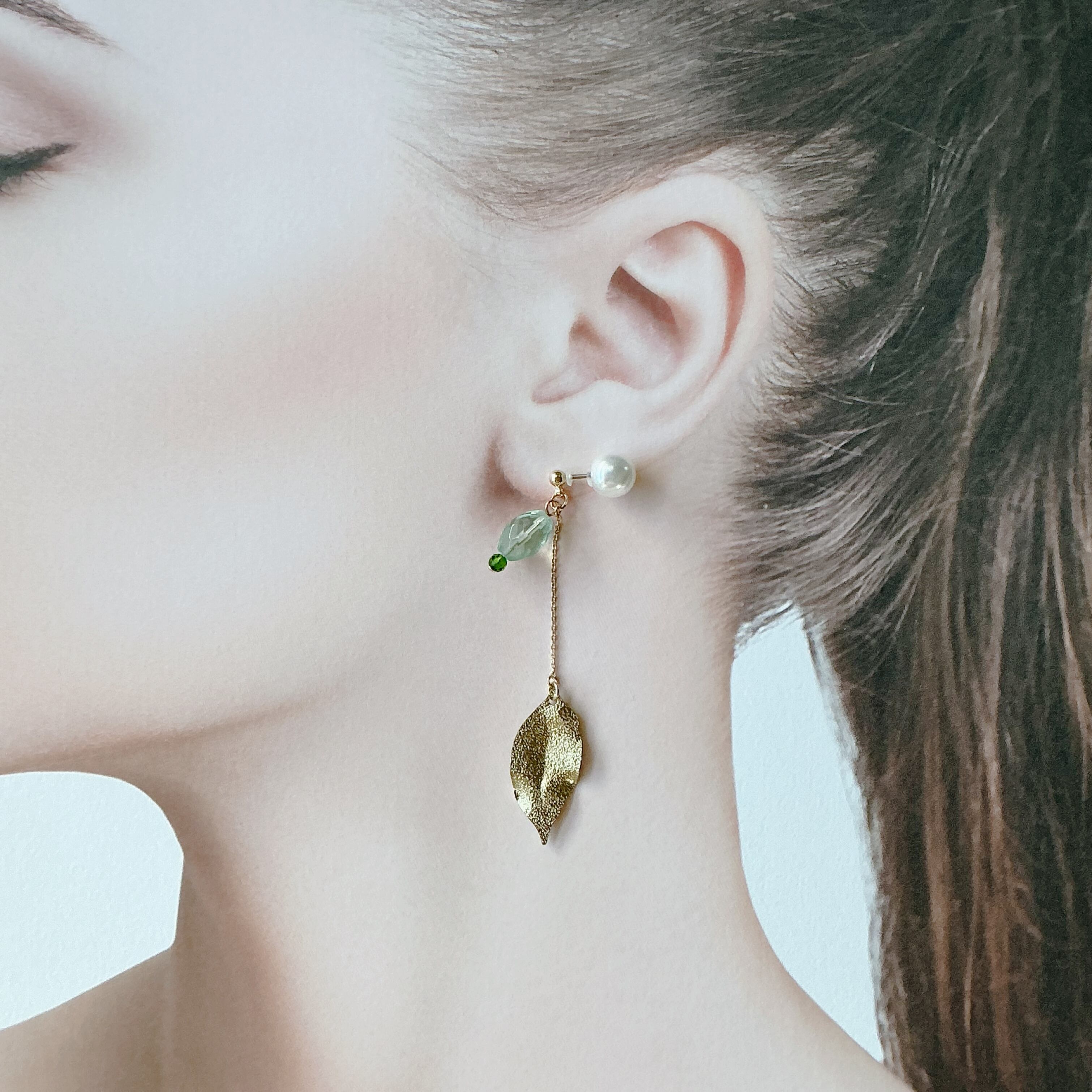 優しいフローライトの色合いと鮮やかなクロムダイオプサイドのグリーンを葉っぱモチーフと共に、日常に天然石との暮らしを楽しんでいただけたら幸いです。