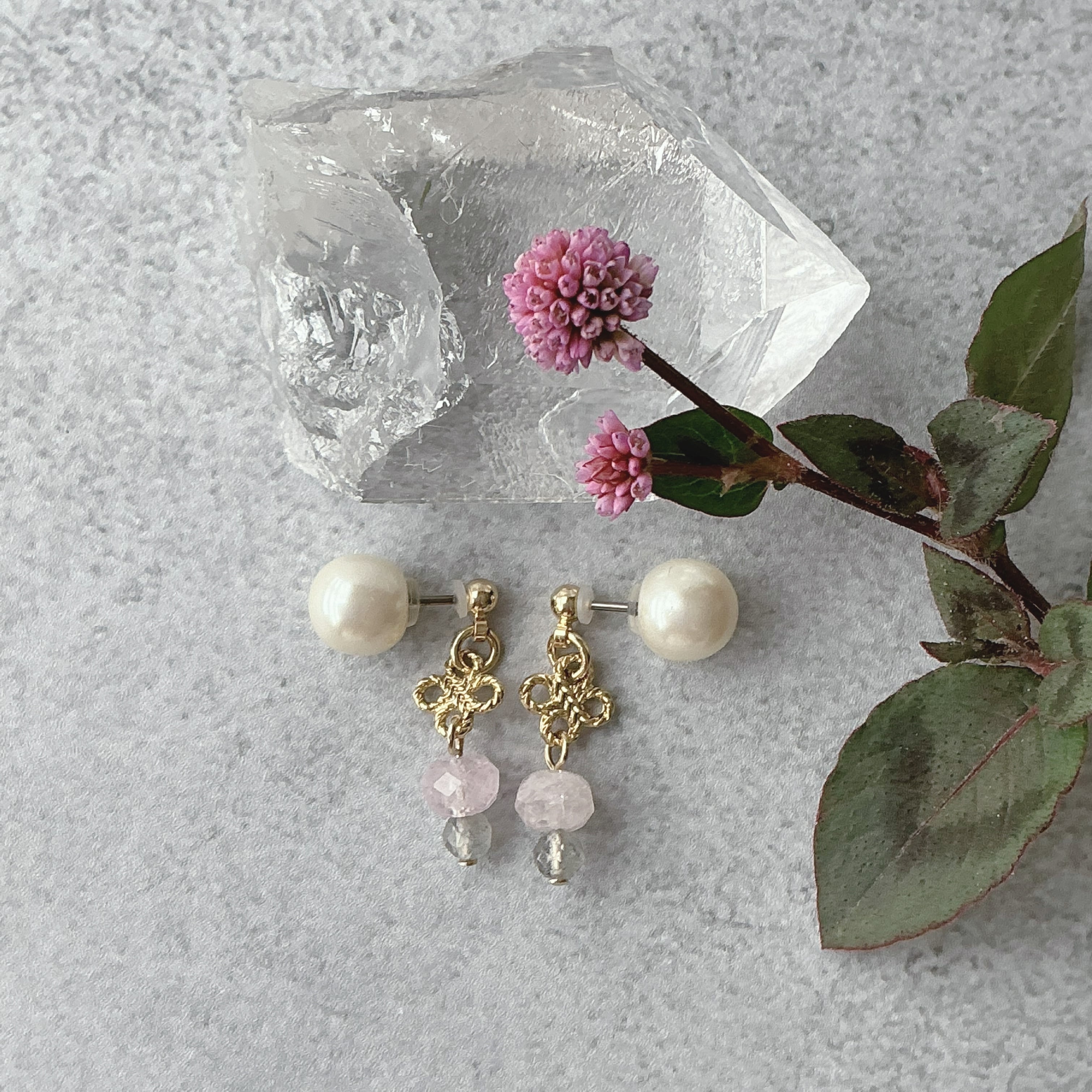 使われている天然石はカットの美しいモルガナイトとラブラドライトです。