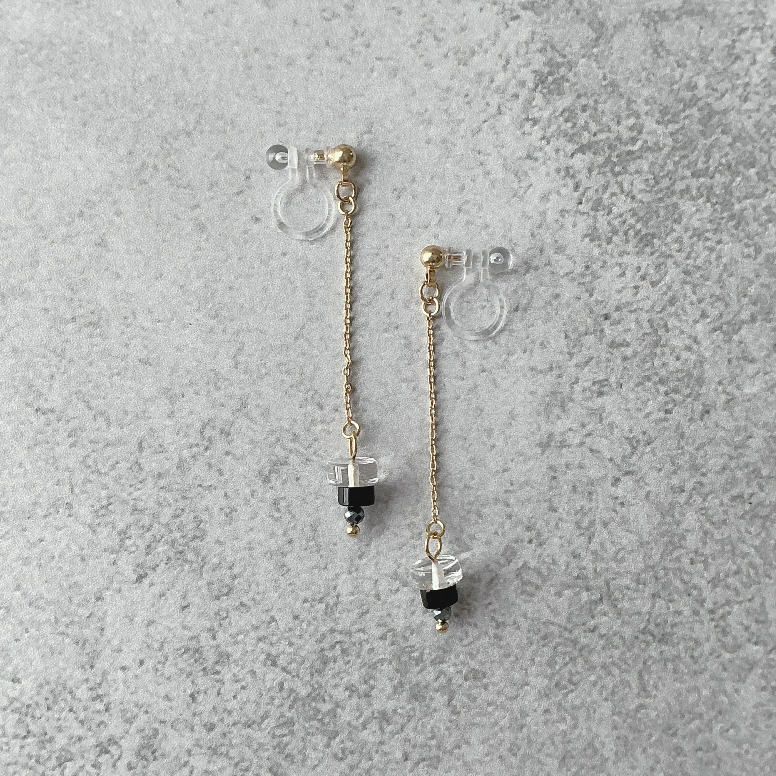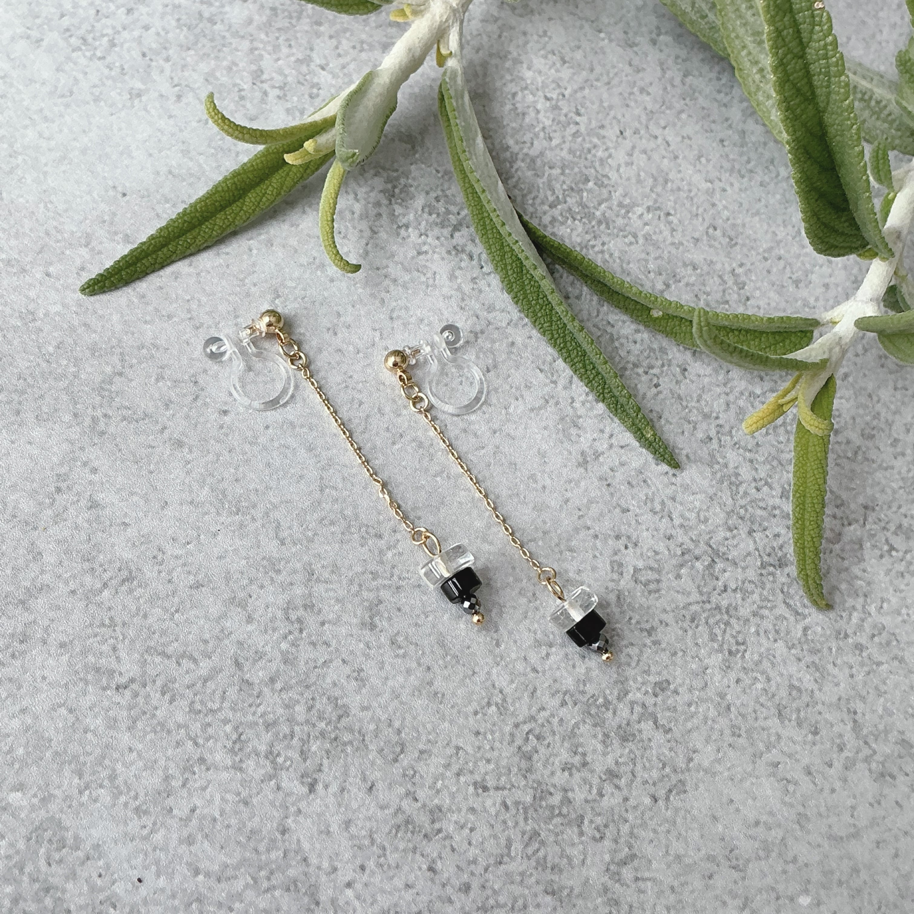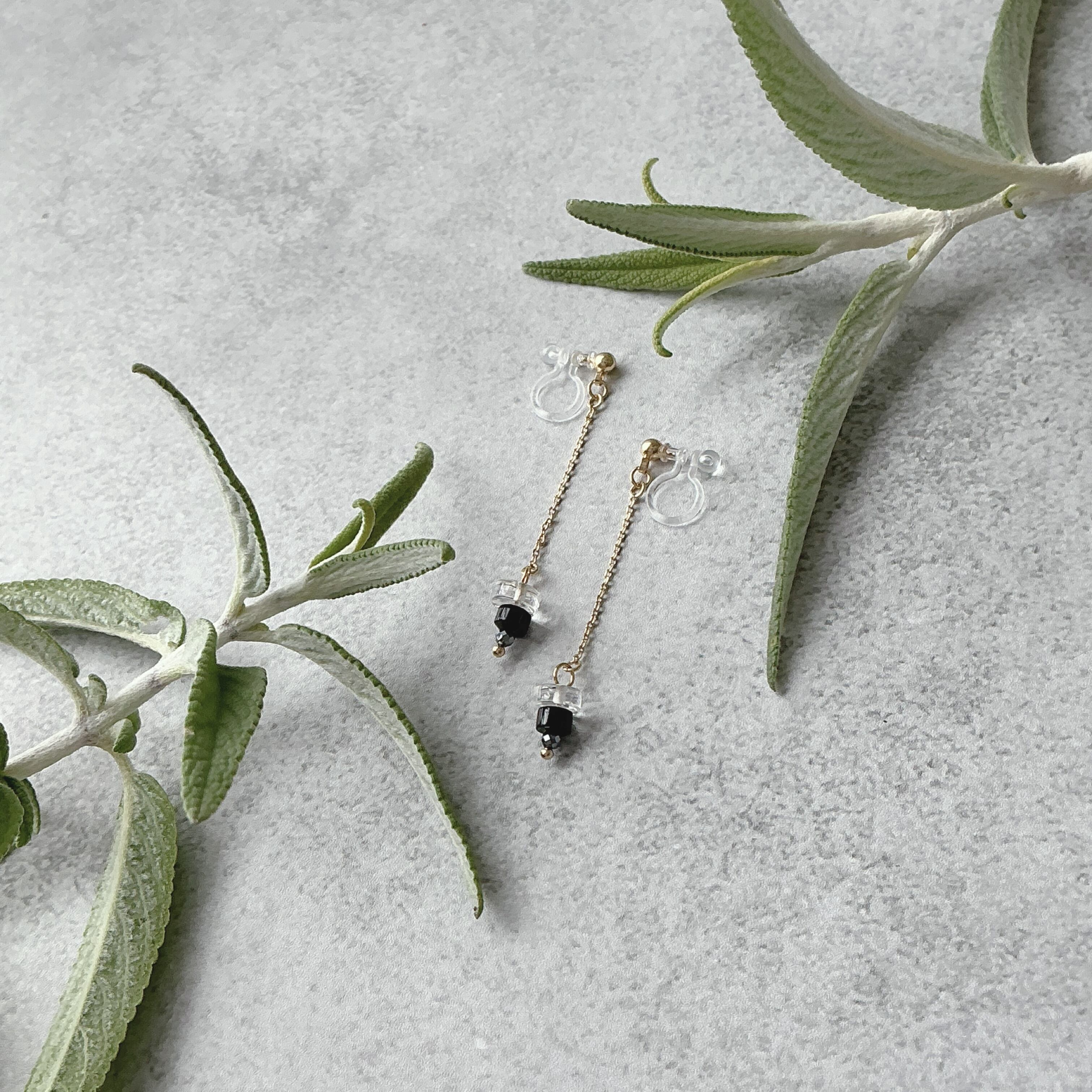 使われている天然石は、透明度の高い水晶とオニキス、細かなカットが美しいテラヘルツです。