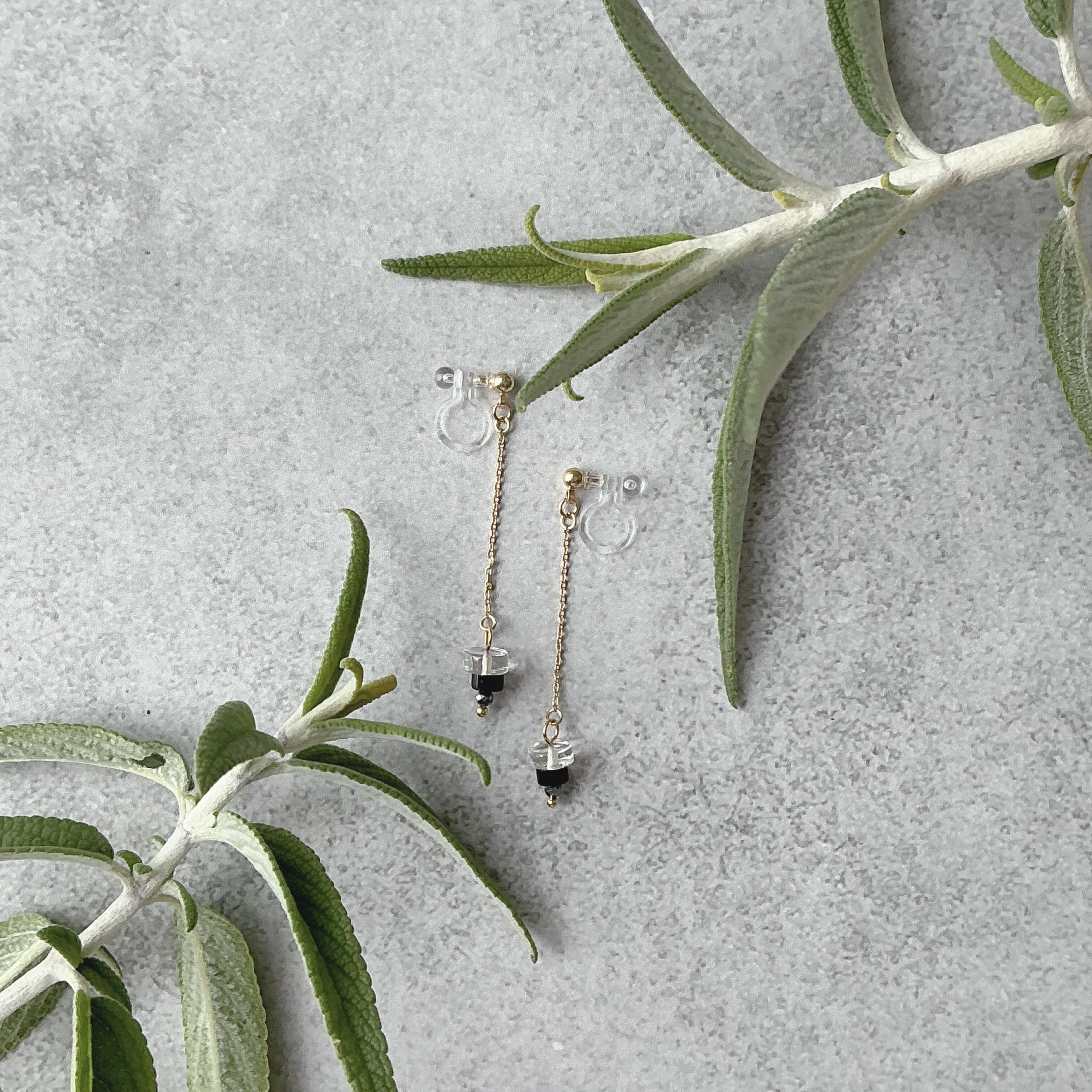 総合的な石言葉は「浄化」「癒し」「自己防衛」「成功」「守護」「調整」など様々な石言葉が並びます。作品名の"ゆらぎ"ですが、小さな天然石のチャームが揺れる様子から名付けました。また、天然石の揺らぎをスピリチュアルな道具として使用するダウジングなどもございますが、そんな何かの答えを導き出すアイテムと石言葉を重ね、この作品が耳でゆらゆらと揺れる中で、日常のちょっとした調整役となりこの作品を気に入って頂けた方の日常を楽しい状態へ導くきっかけとなったら嬉しいなという願いから作り上げました。繊細なデザインがお好きな方には本当におすすめの作品です。