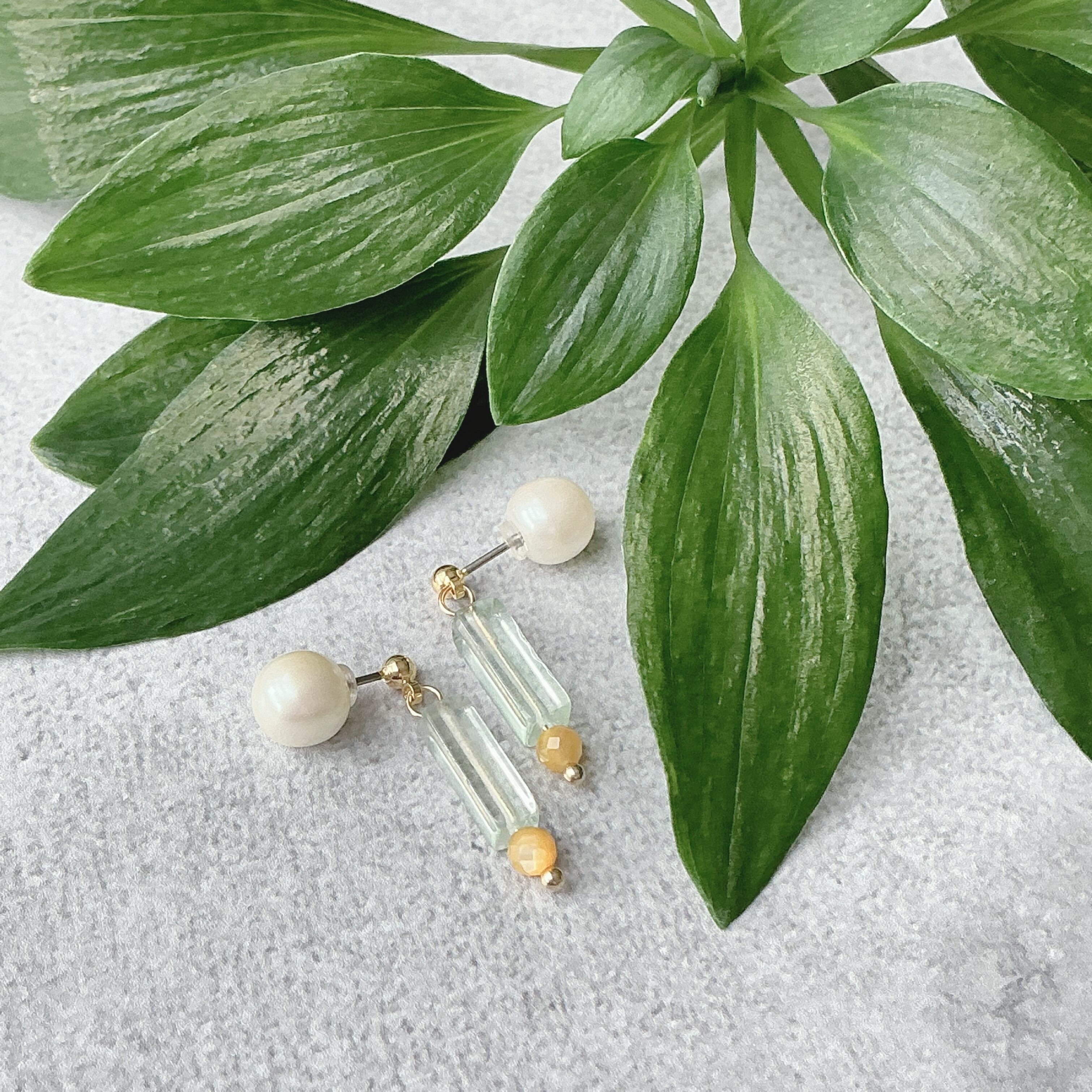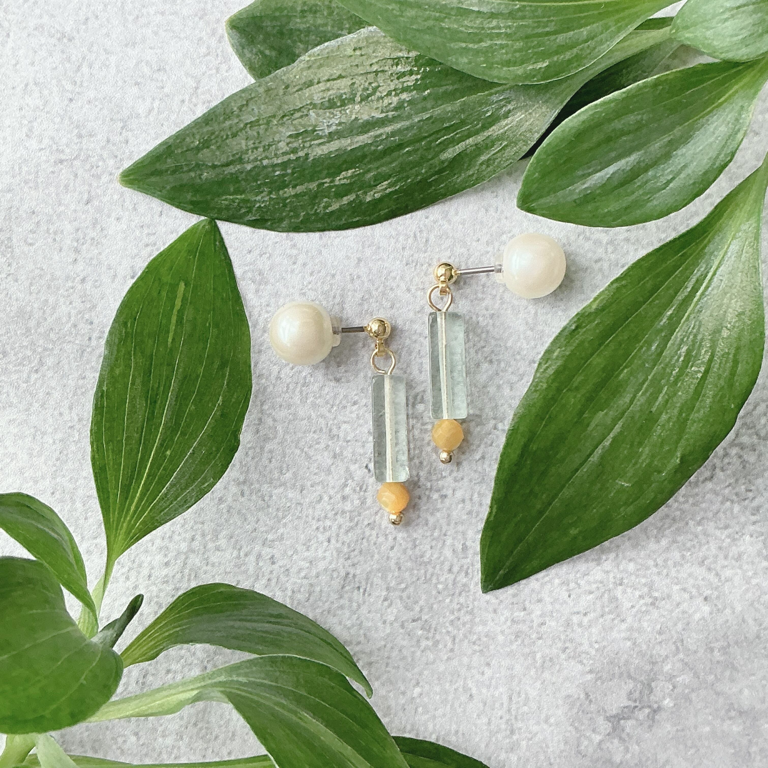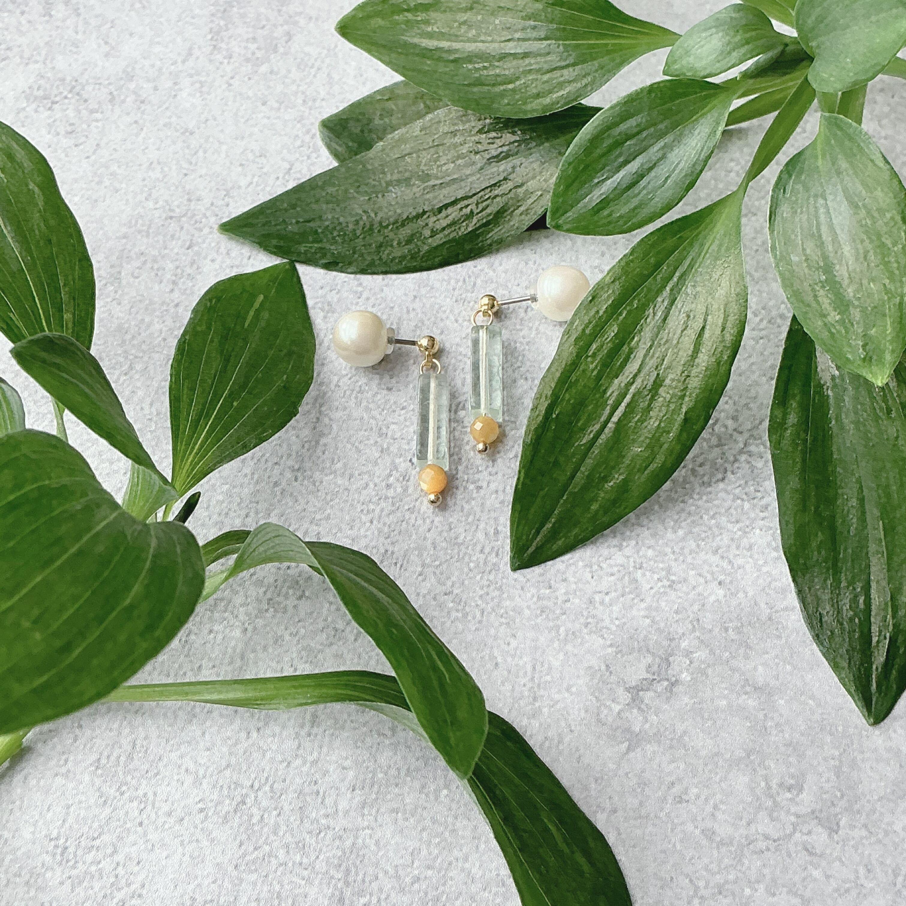柱(HASHIRA)のようにスッとしたデザインで淡いグリーンと黄色がなんとも可愛い作品です。現在は風の時代という事で、様々な面で数本の柱(HASHIRA)を持つ方が良いと言われています。仕事にしても1本の柱より副業や好きを仕事にするなど数本の柱を持っている方もますます増えているように感じます。働き方にしても、住まいにしても様々なスタイルが広がってまいりました。どんな柱も自分を支え、大切な人を支える何かになるのでしょう。そんな事を思いながら、この天然石のアクセサリーとの日常を楽しんで頂けたら幸いです。