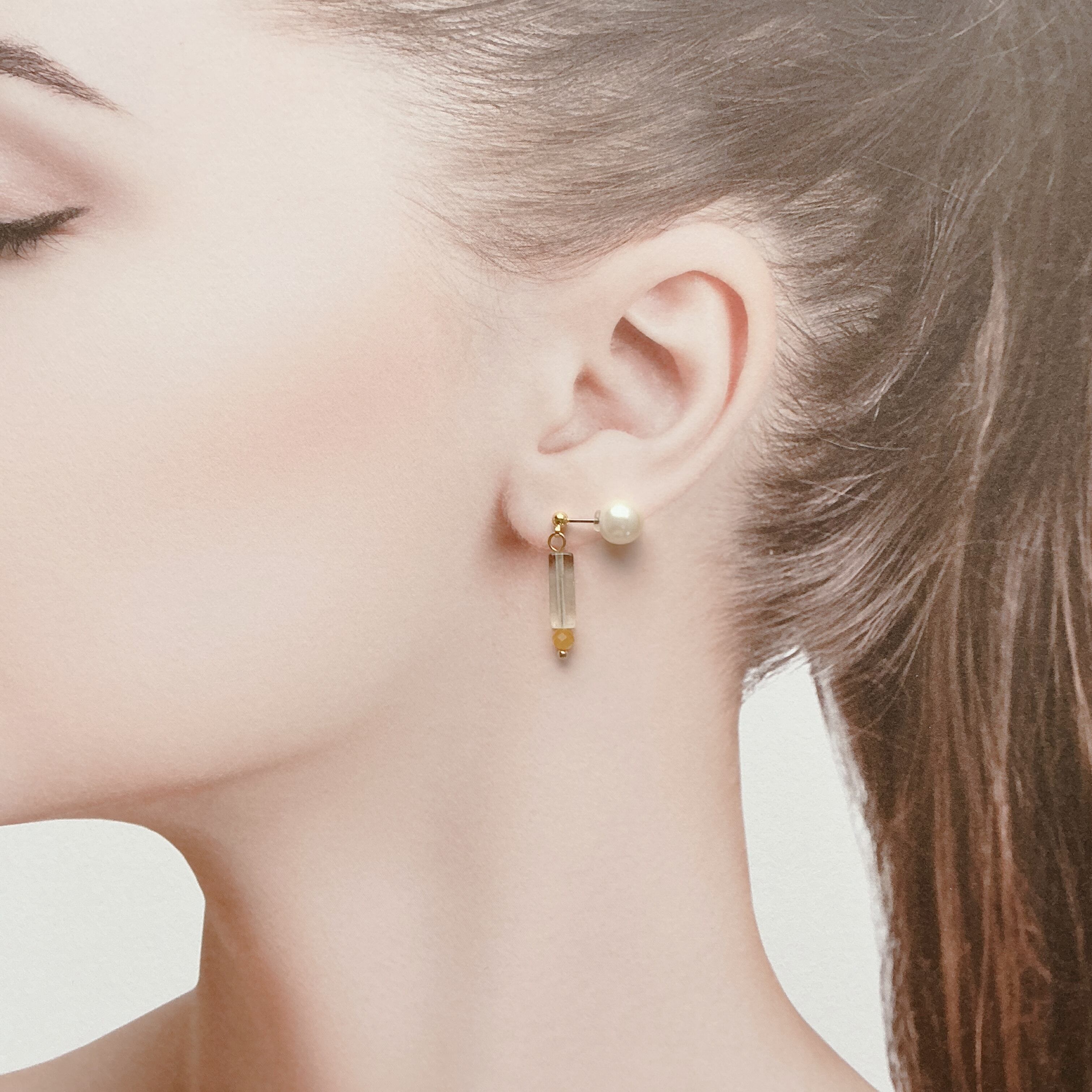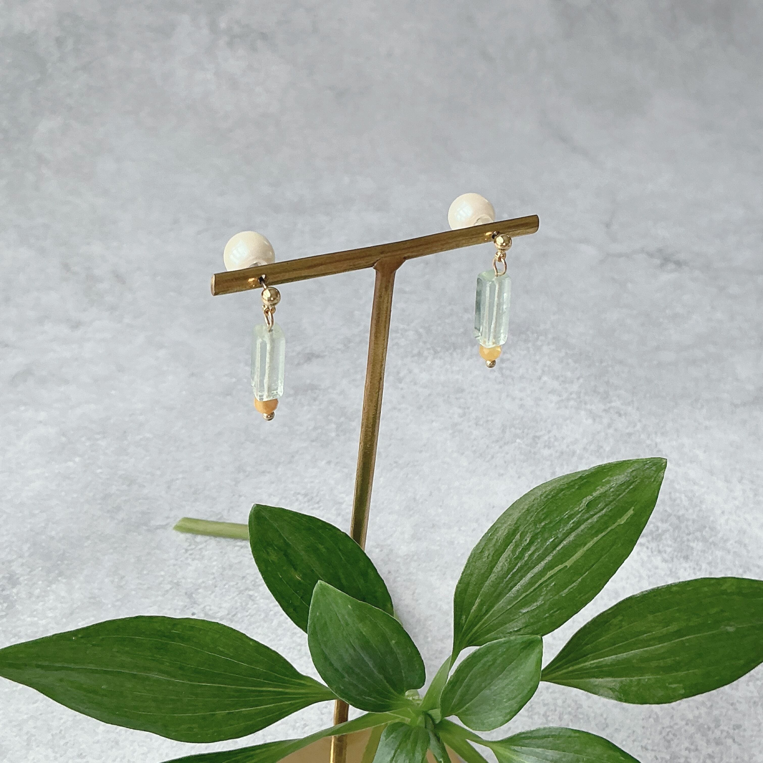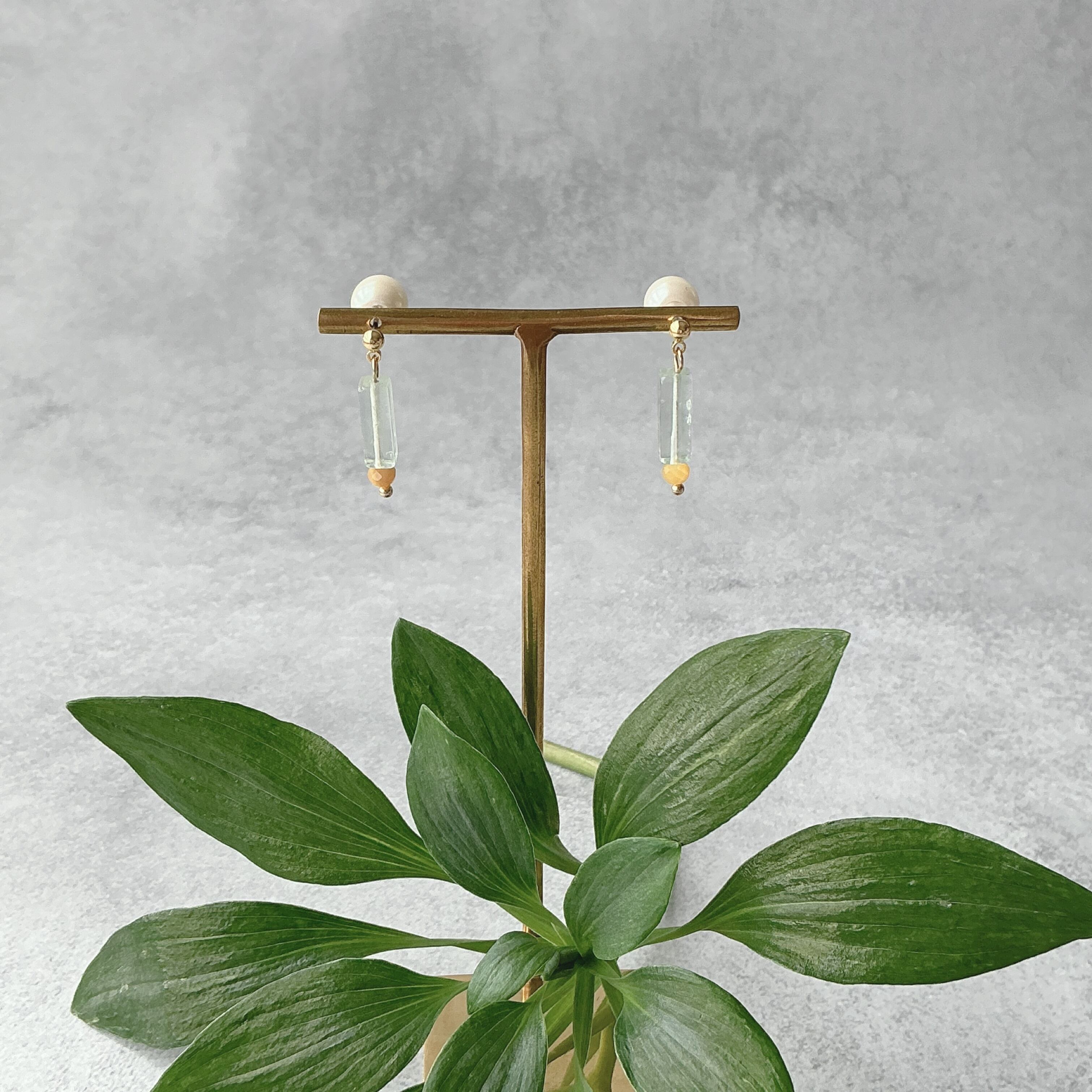 柱(HASHIRA)のようにスッとしたデザインで淡いグリーンと黄色がなんとも可愛い作品です。現在は風の時代という事で、様々な面で数本の柱(HASHIRA)を持つ方が良いと言われています。仕事にしても1本の柱より副業や好きを仕事にするなど数本の柱を持っている方もますます増えているように感じます。働き方にしても、住まいにしても様々なスタイルが広がってまいりました。どんな柱も自分を支え、大切な人を支える何かになるのでしょう。そんな事を思いながら、この天然石のアクセサリーとの日常を楽しんで頂けたら幸いです。