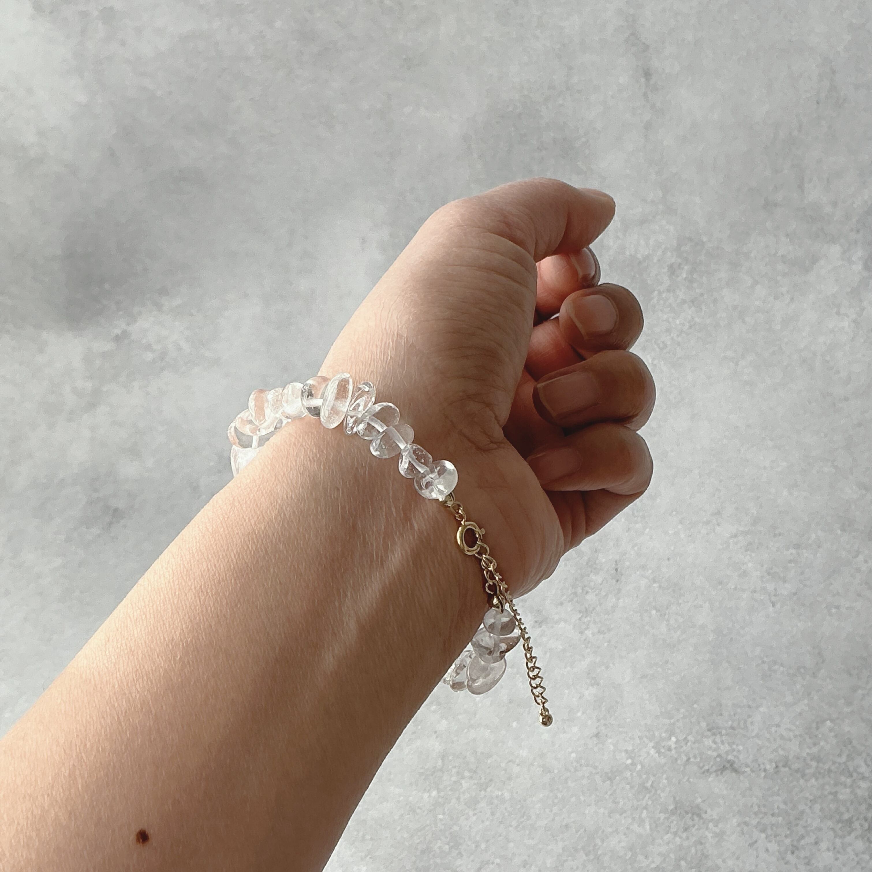 作品名の"hohoemi"ですが、総合的な石言葉と全体のデザインからインスピレーションで決めました。全体的な印象がコロンと可愛らしくナチュラルな存在感、それだけでもつい微笑んでしまうデザインですが、総合的な石言葉からも愛に満ちナチュラルに自分自身を楽しんで頂けるそんな天然石が連なっているなと思います。また、脳科学的にも幸せホルモンは嬉しい事が先か、微笑みや笑顔が先かの議論がされるくらい口角が上がったという事実で脳は勝手に嬉しい事が起こっていると勘違いしポジティブな方向へ意識を向けるとも言われています。こちらの作品を日常で楽しむ中で、微笑みが増え幸せへの小さな階段を知らず知らずに上がり素敵な現実へと導いてくれたら良いなと願う作品です。天然石との日常を楽しんで頂けたら幸いです。