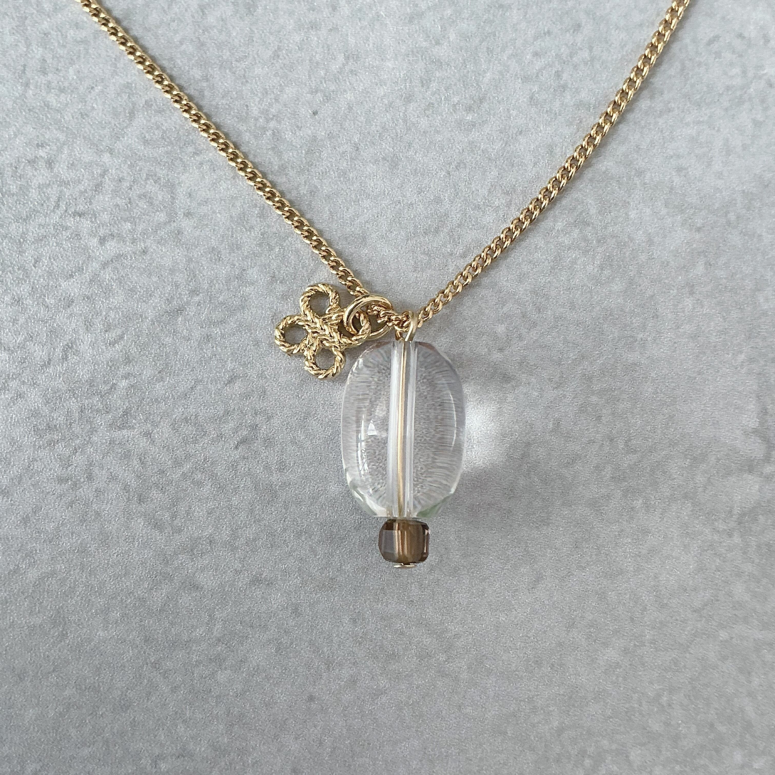 使われている天然石は透明度も高い水晶と焦茶色がしっかりと出ている品の良いスモーキークオーツを組み合わせました。