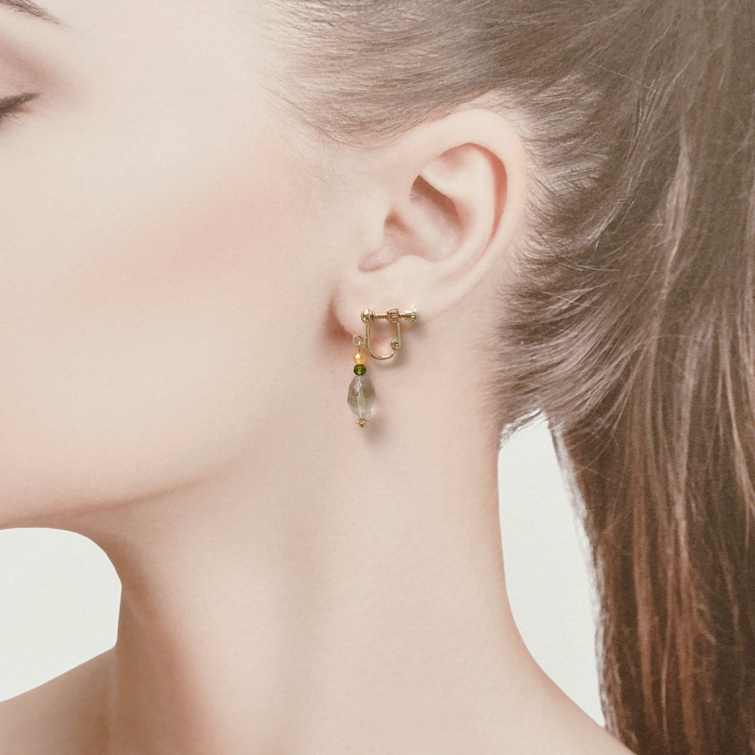 こちらの作品は左右で少しデザインを変えてあります。ささやかながらも、左右で並びの違う天然石のちょっとした違いも楽しんでいただけたら幸いです。